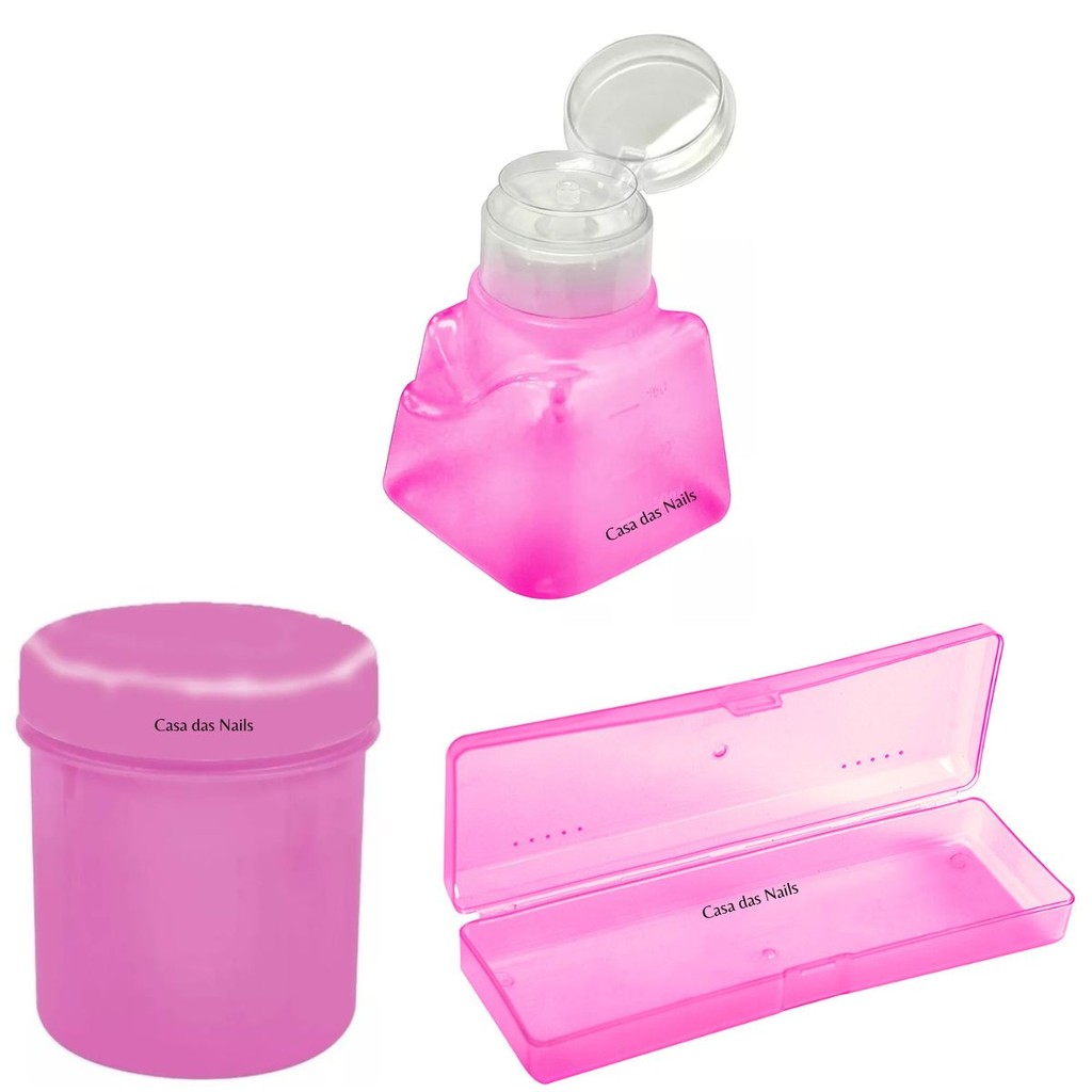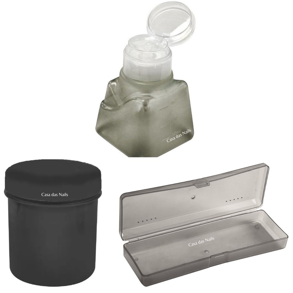 Estojo para Nail Designer Manicure + Porta Algodão + Dosador Italiano de acetona 180ml Santa Clara