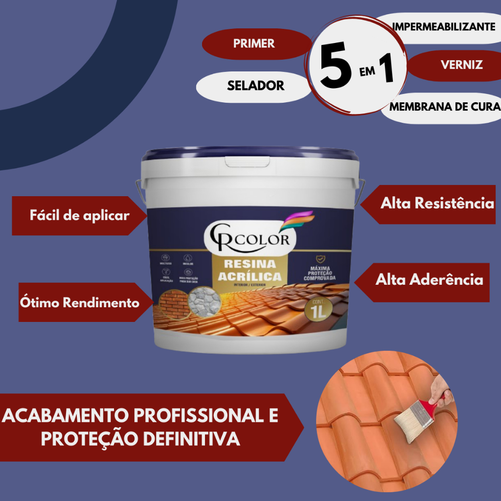 Resina Acrílica Brilhante Incolor Multiuso 1/3,6lt CRCOLOR Imperamibilizante Protege Premium Telhado Parede Tijolo