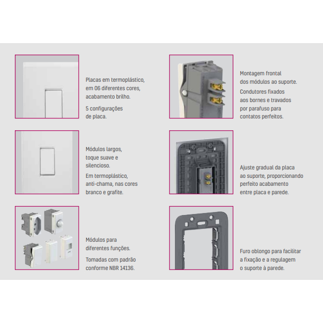 Conjunto Tomadas 10A/20A Interruptores Paralela/Simples Placa Cega Liz Branca Tramontina
