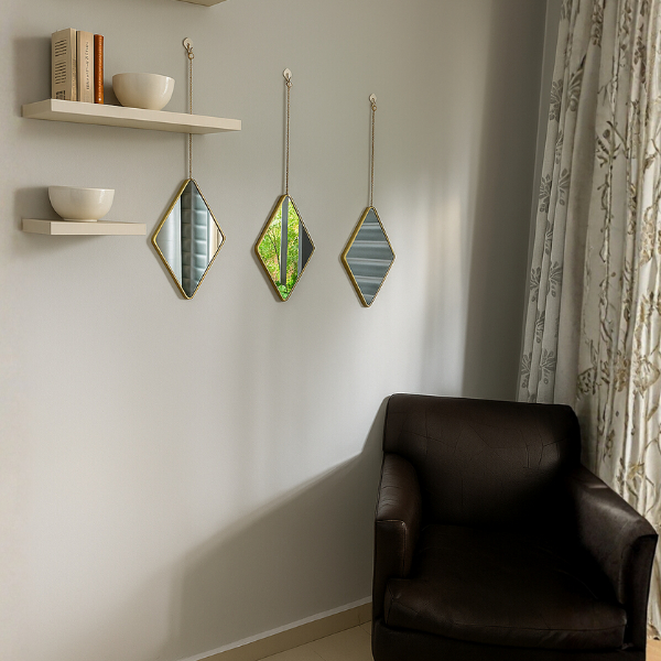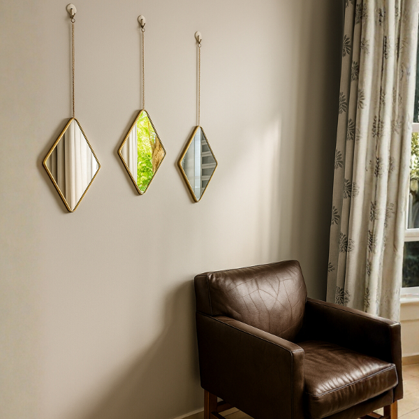 Espelho Decorativo Losango Diamante com Moldura Champanhe