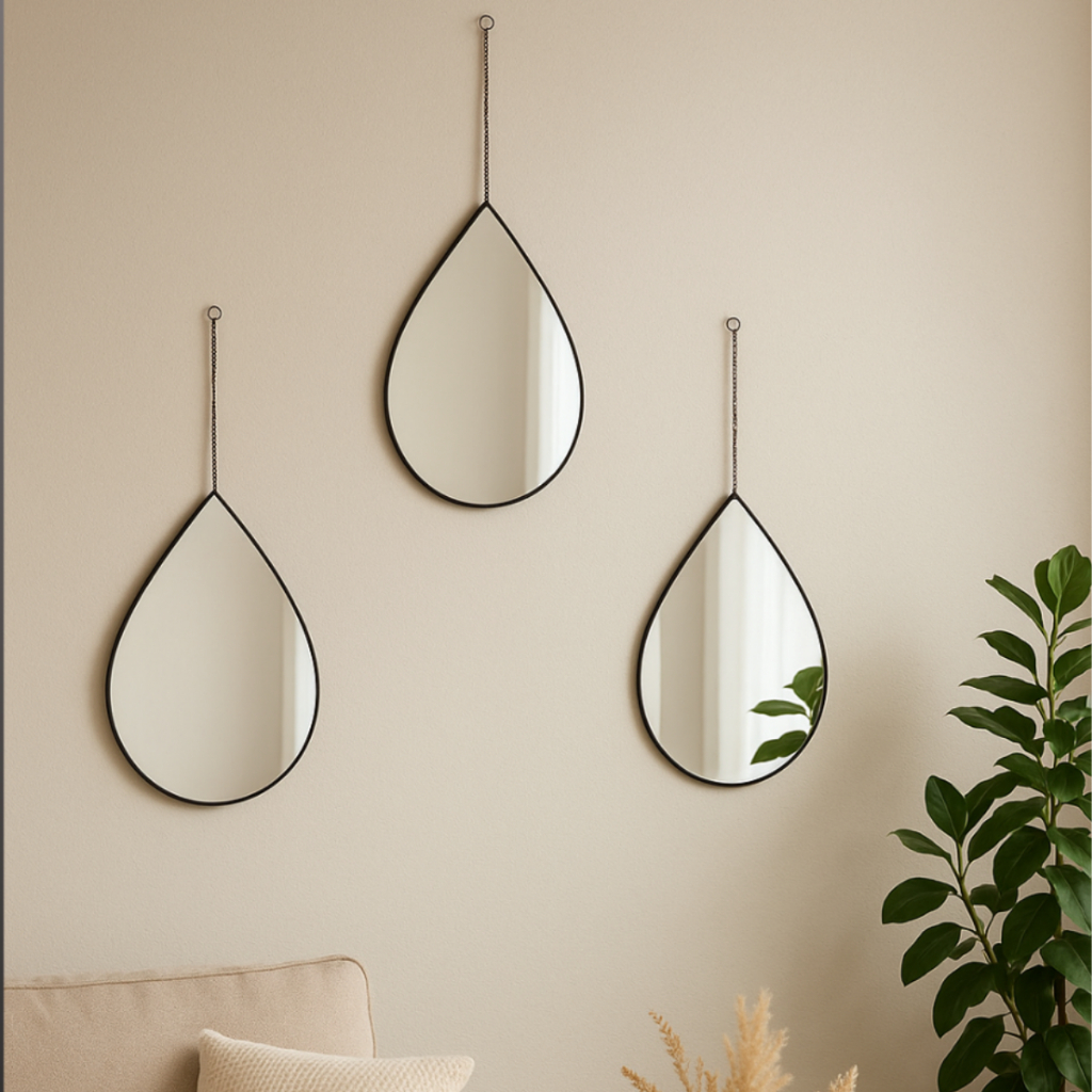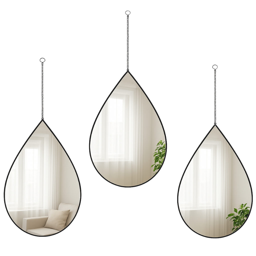 kit c/3 Espelho Gota Parede Decorativo Banheiro Quarto Sala