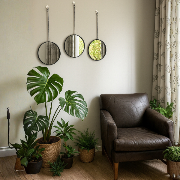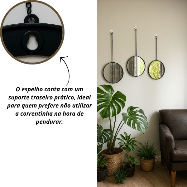Kit C/3 Espelho Redondo Preto Decorativo Banheiro Quarto