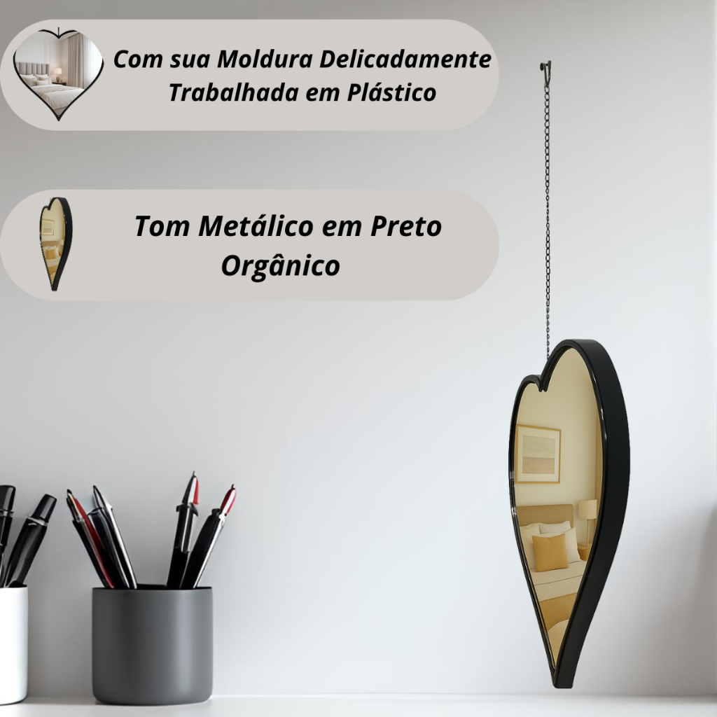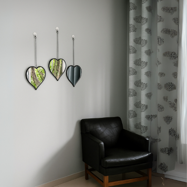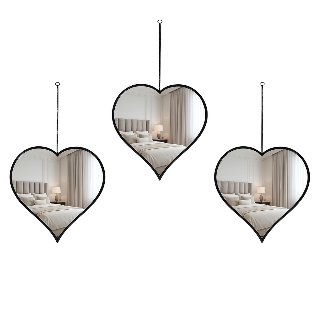 Kit C/3 Espelho De Parede Coração Preto Para Sala, Quarto