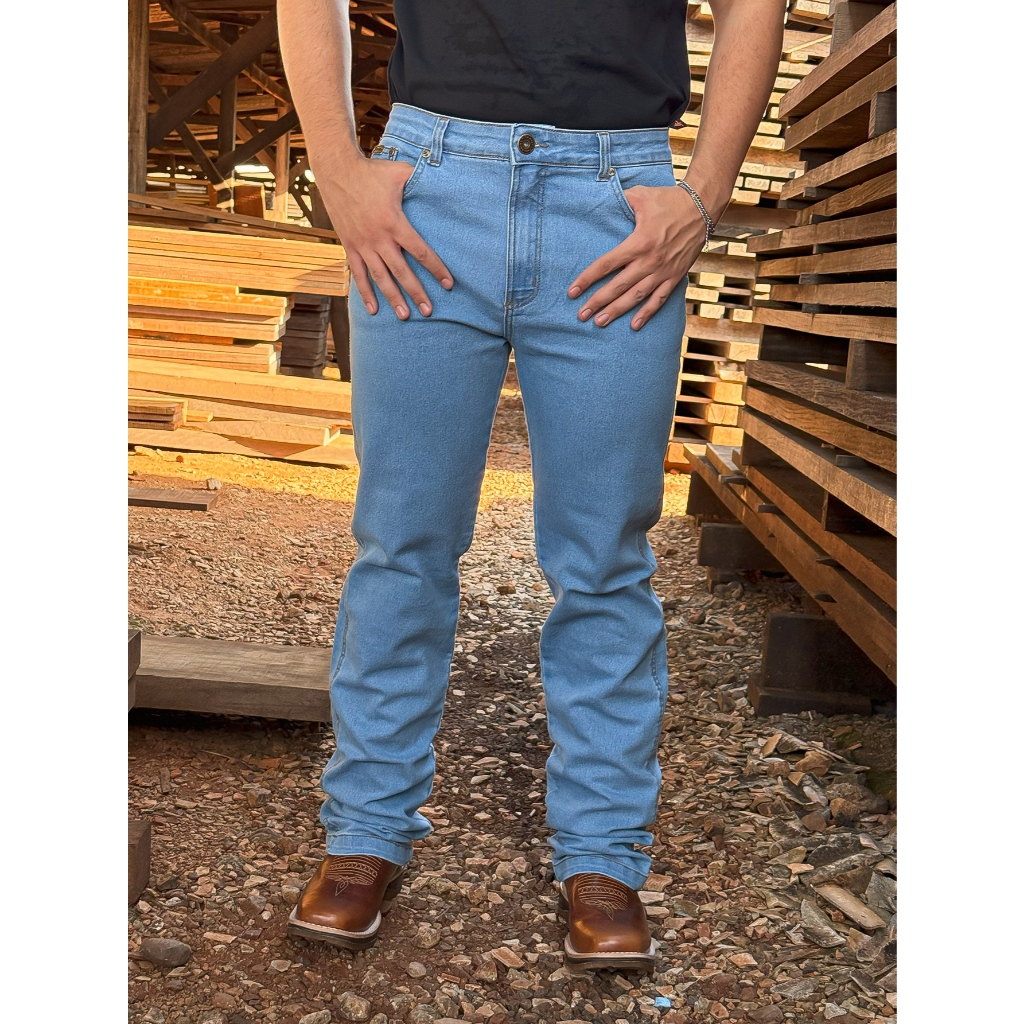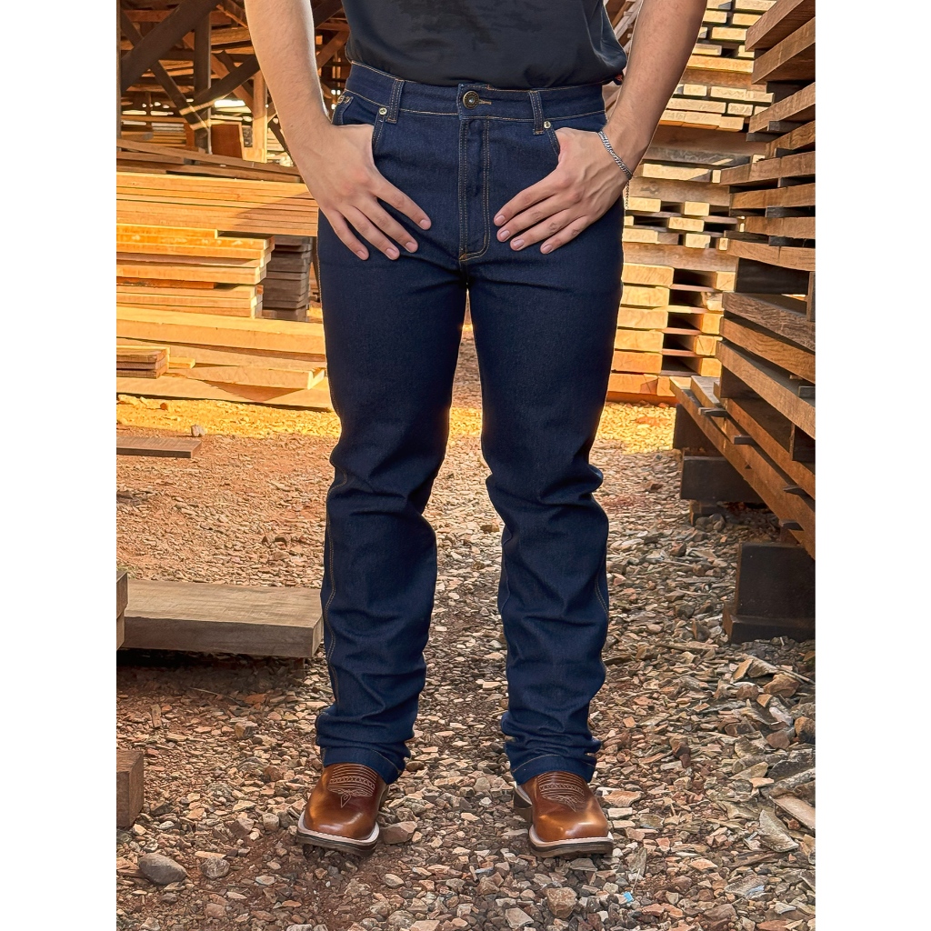 Calca Country Jeans Masculina Tradicional Peão Rodeio Agro Texana Bordado Barra Larga Pura Raça