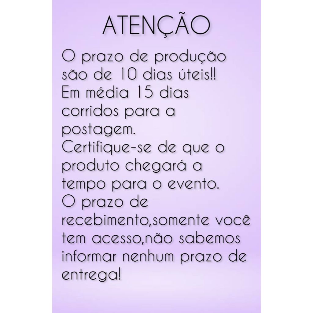 Sob encomenda: envio após 10 dias da compra