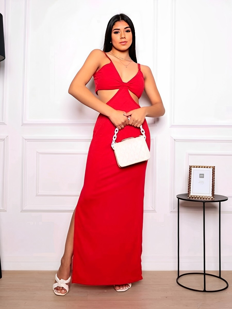 Vestido Longo Feminino Com BOJO e FENDAS Lateral black Friday