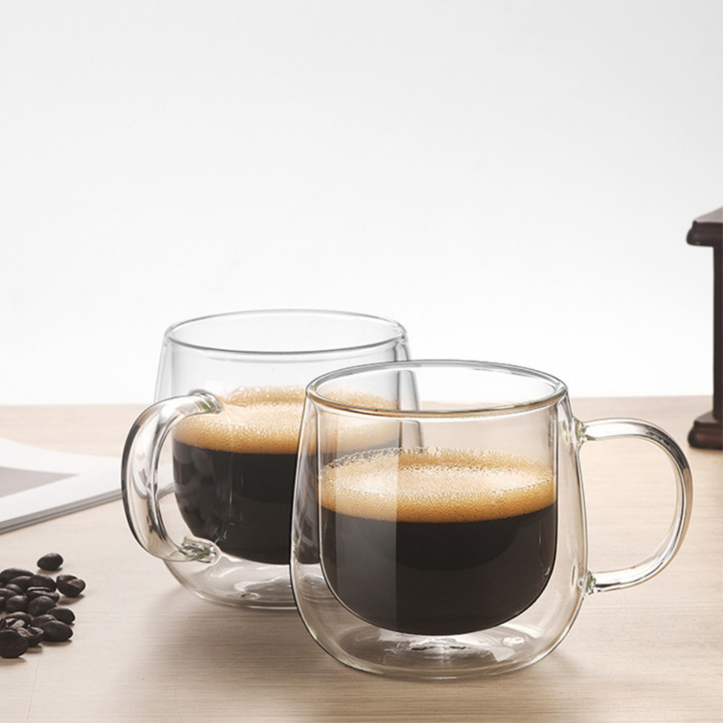 Conjunto De Xicara Vidro Duplo Com Pires Caneca Parede Dupla 4un 80ml