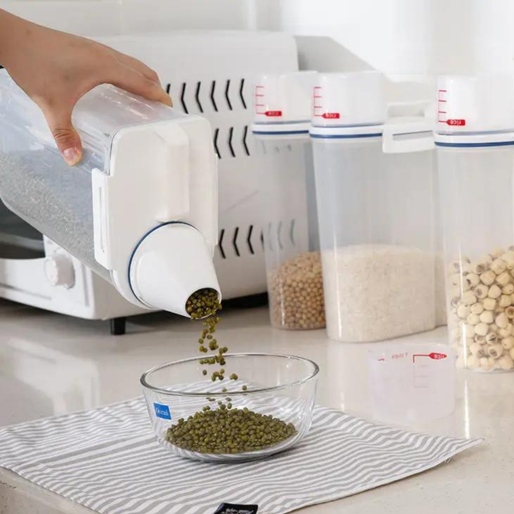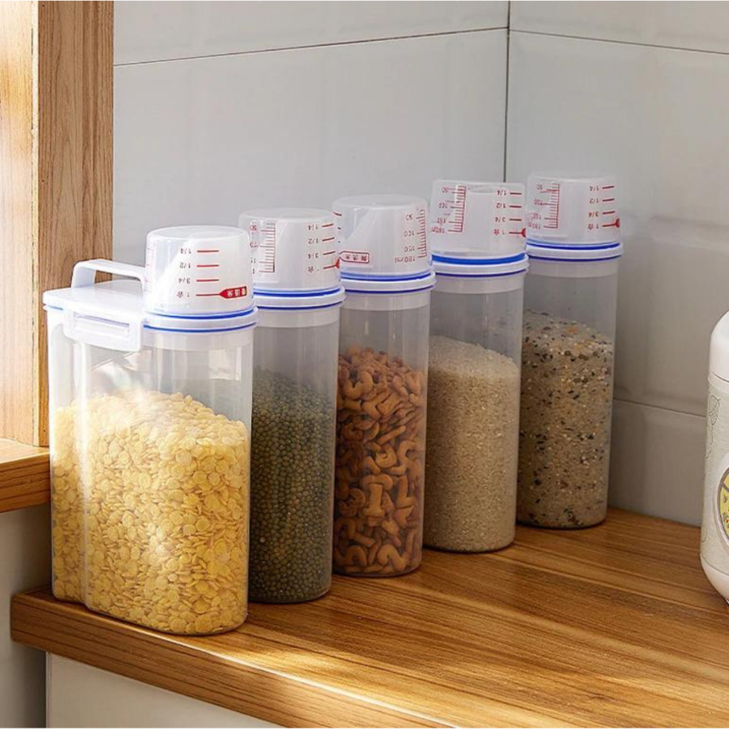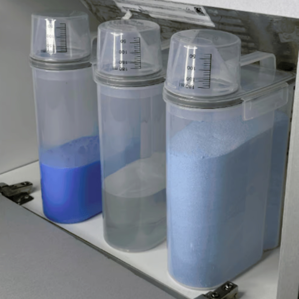 Kit Dispenser Organizador Plástico Lavanderia Com Tampa Dosadora Medidora 2L Sabão Em Pó