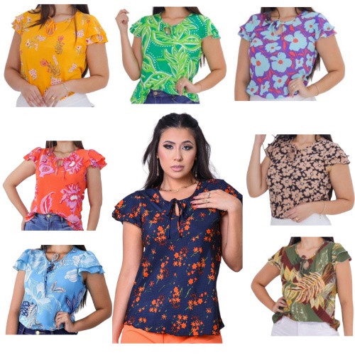 Kit com 5 Blusas Feminina Crepe Luna Promoção