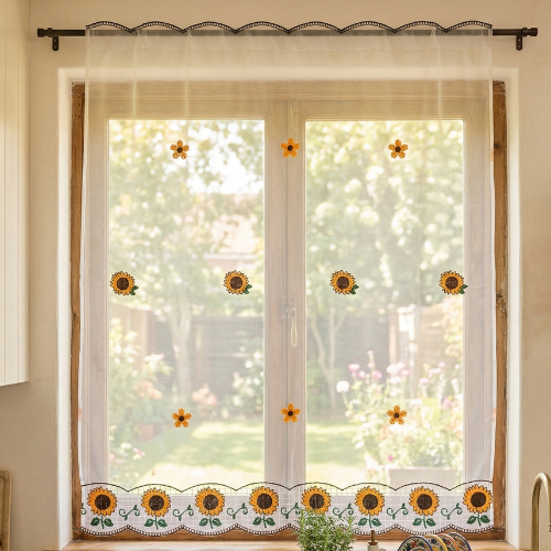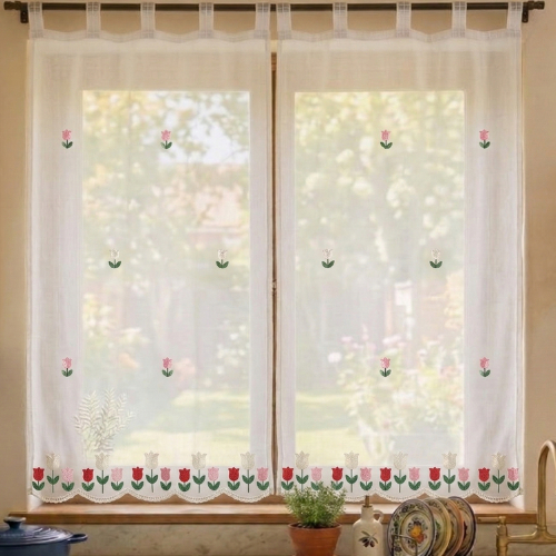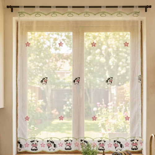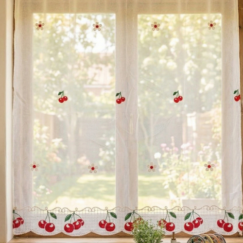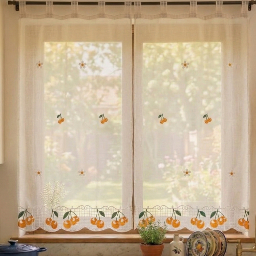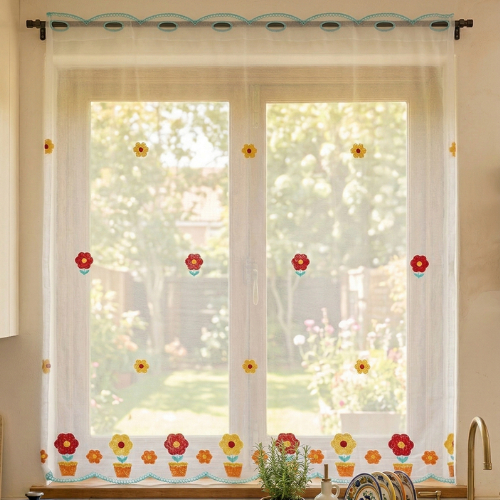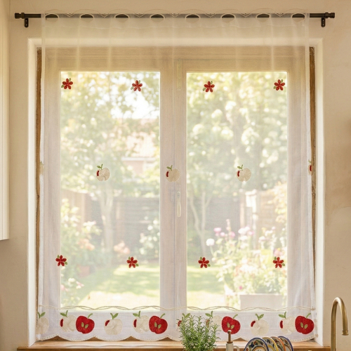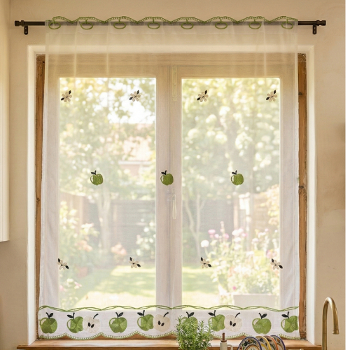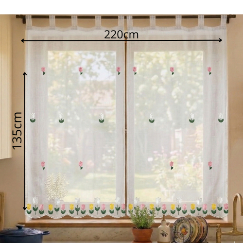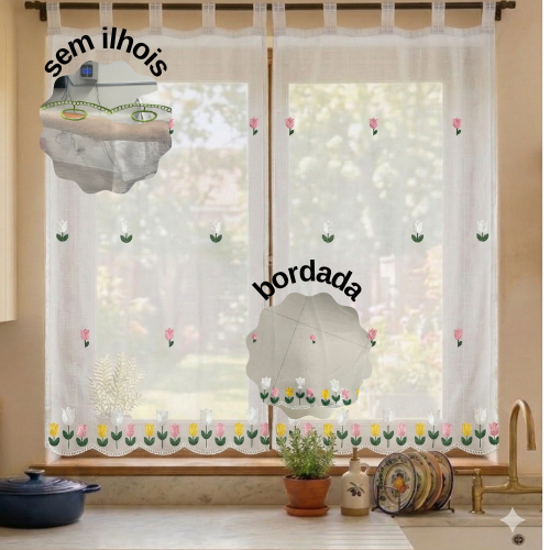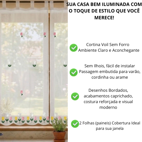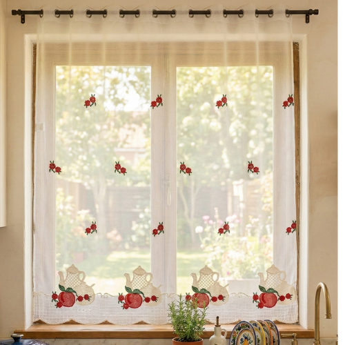 Cortina de Cozinha Voil Bordado Para Varão 135x220cm