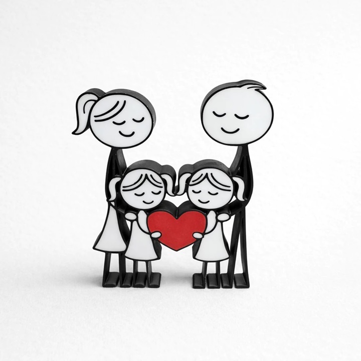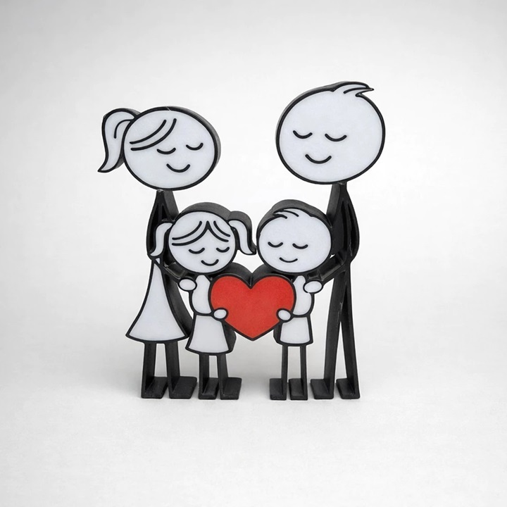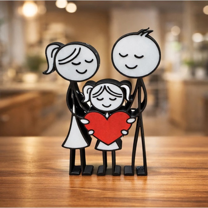 Estatueta Família Feliz 3D Decoração Moderna Presente Família Minimalista Escultura Decorativa