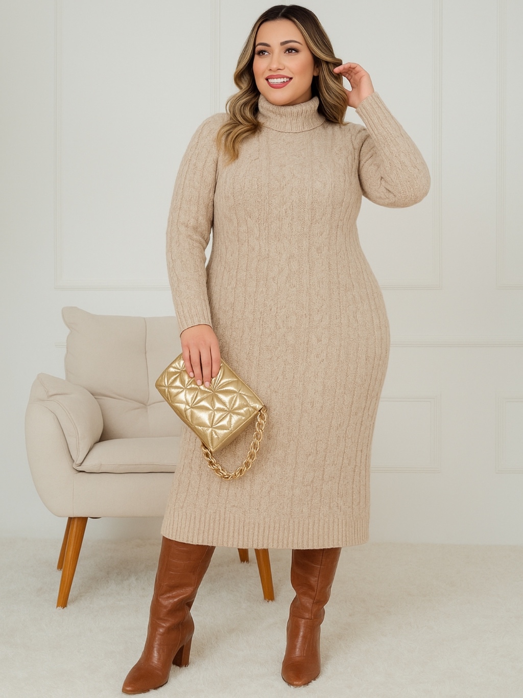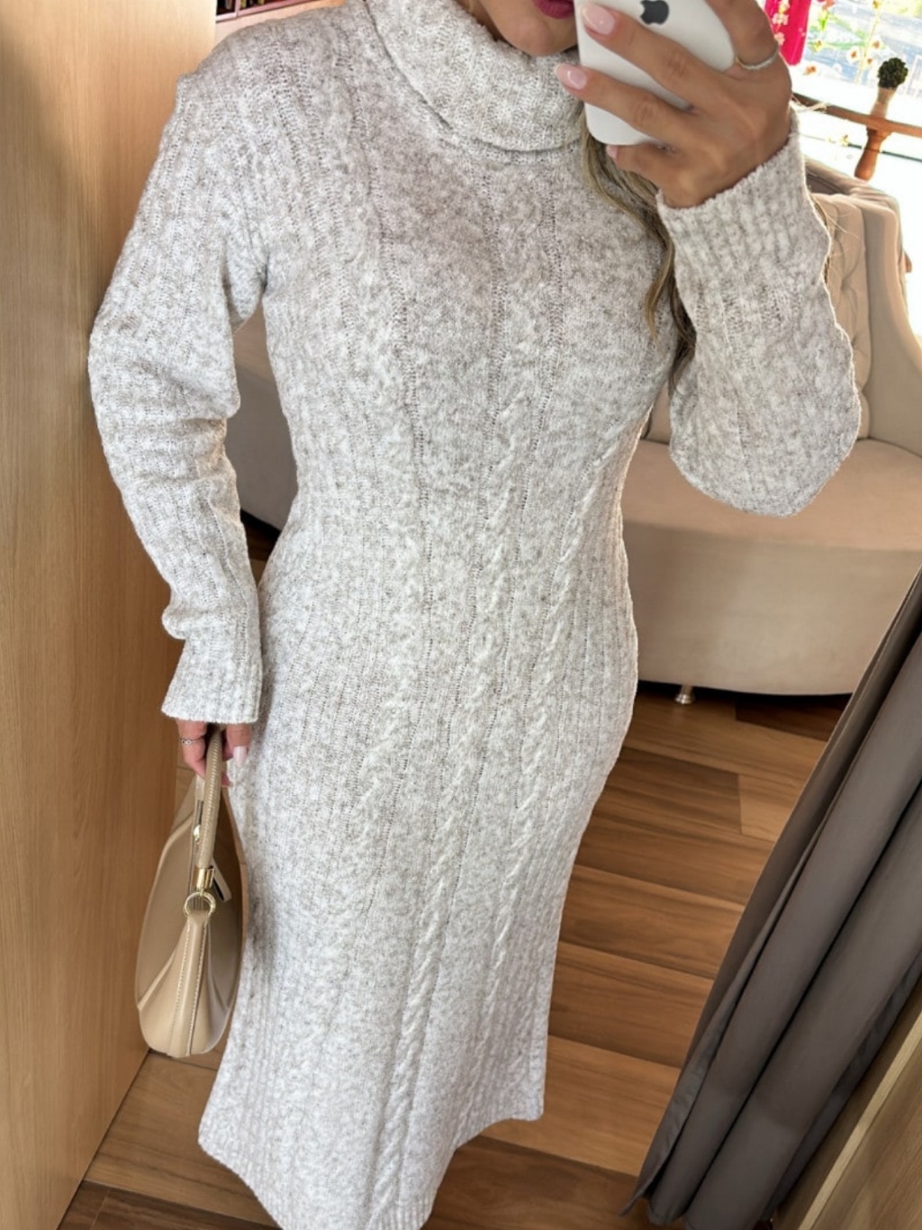 Vestido Longo Feminino Manga Comprida Gola Alta Tricot Malha Inverno Plus Size Gestante Gravida