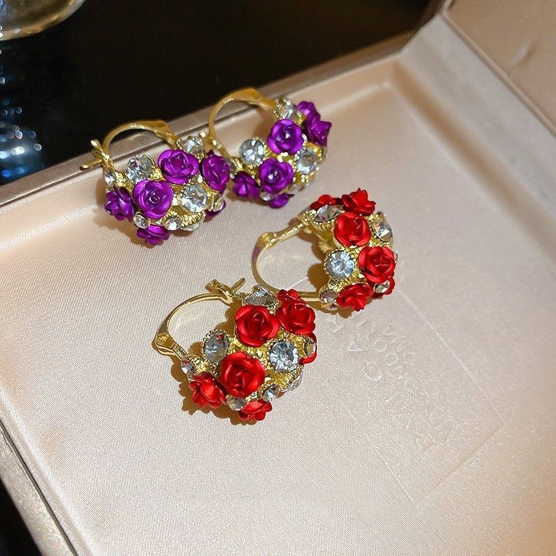 Novo Estilo Europeu Americano Design Rose Flower Basket Ear Buckle Fashion Simples Brincos requintados
