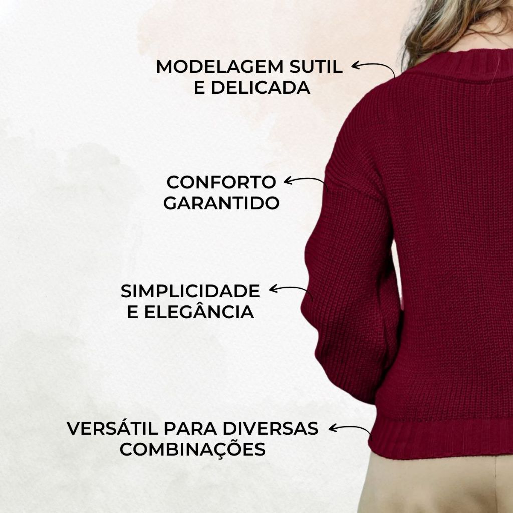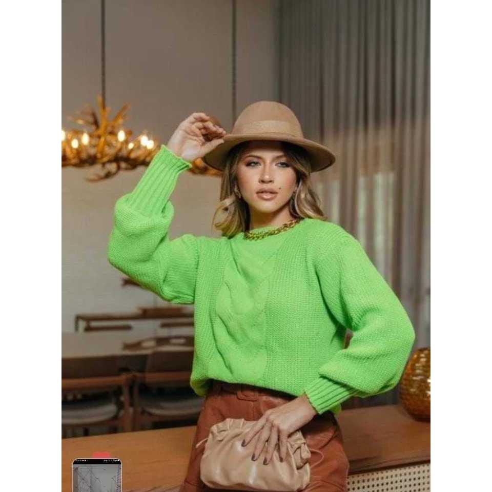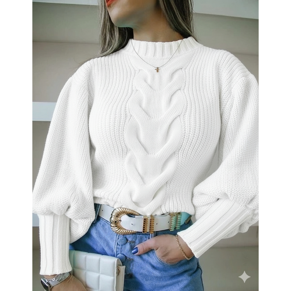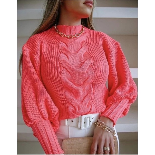 Blusa de Frio Feminina Trança Manga Bufante Modelo Blogueirinha