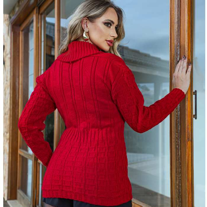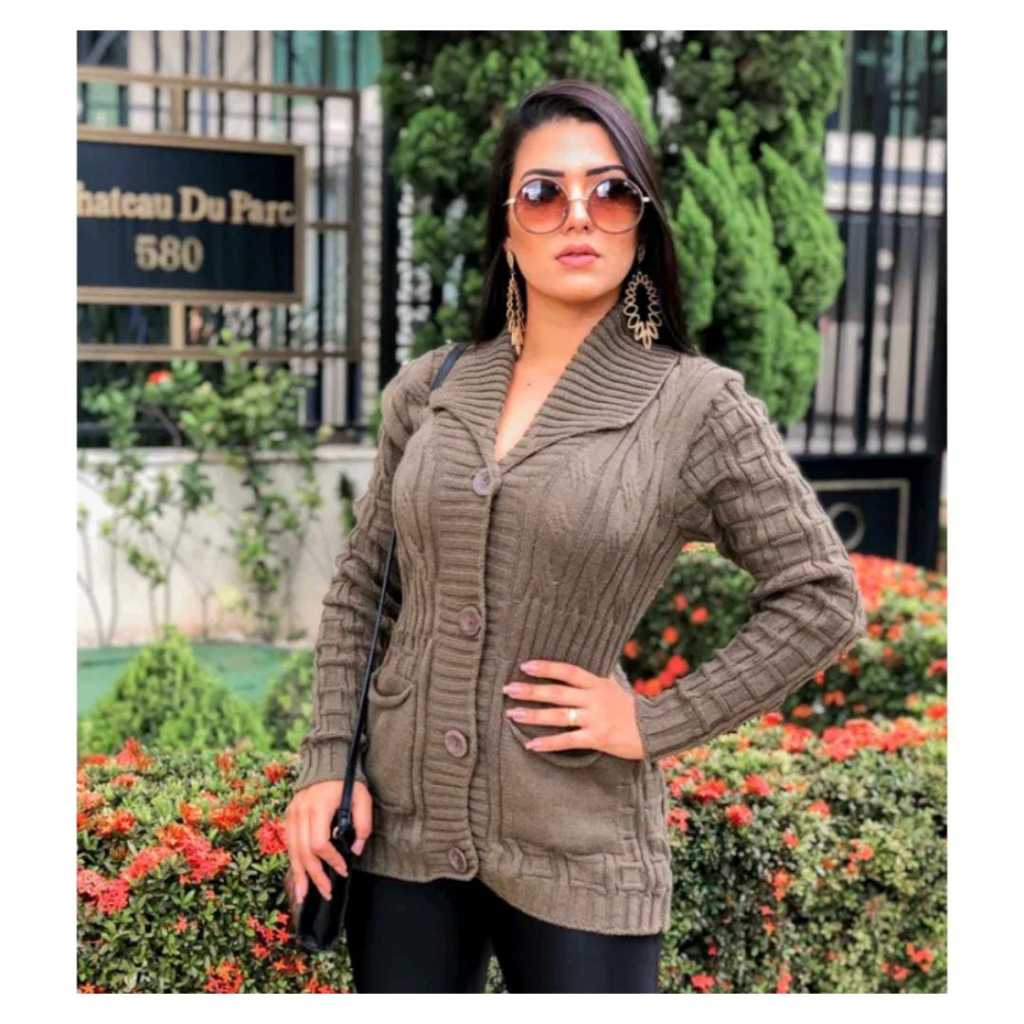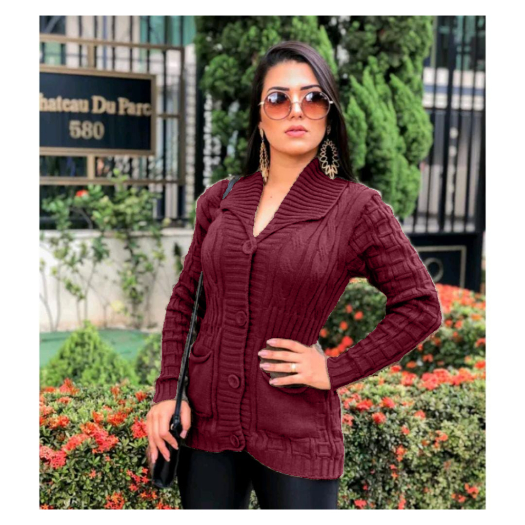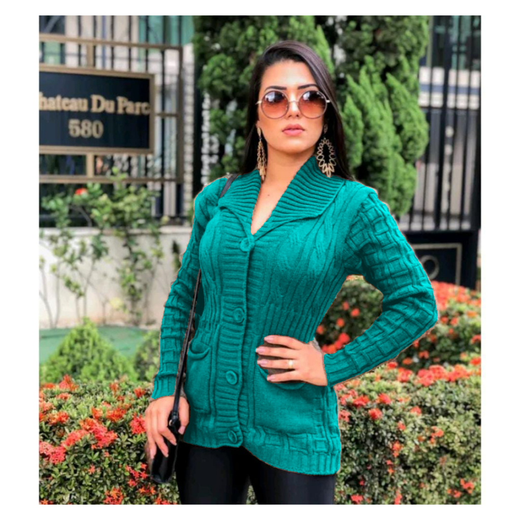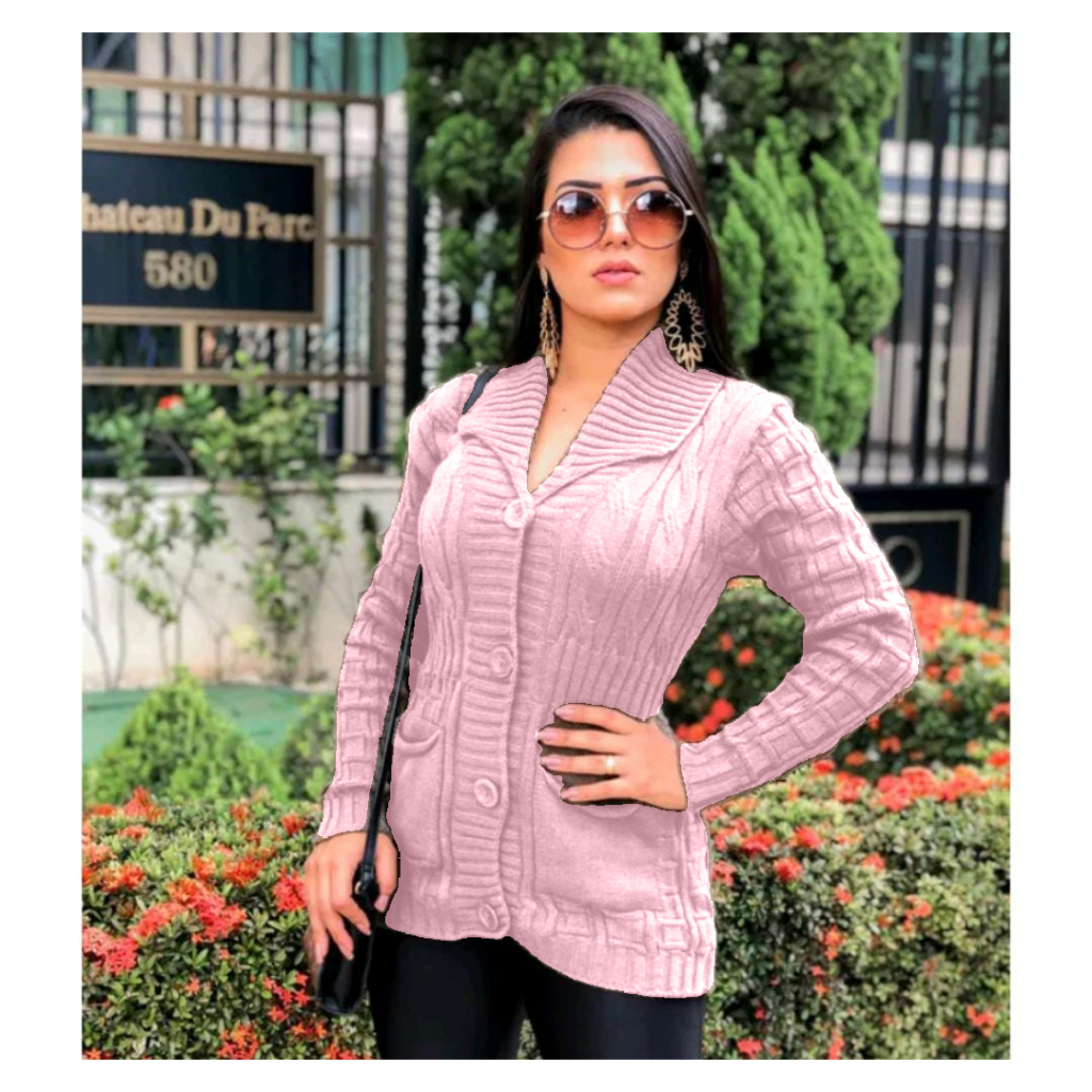 Casaco Feminino Inverno Grosso Cardigan Elegante Trança Lã
