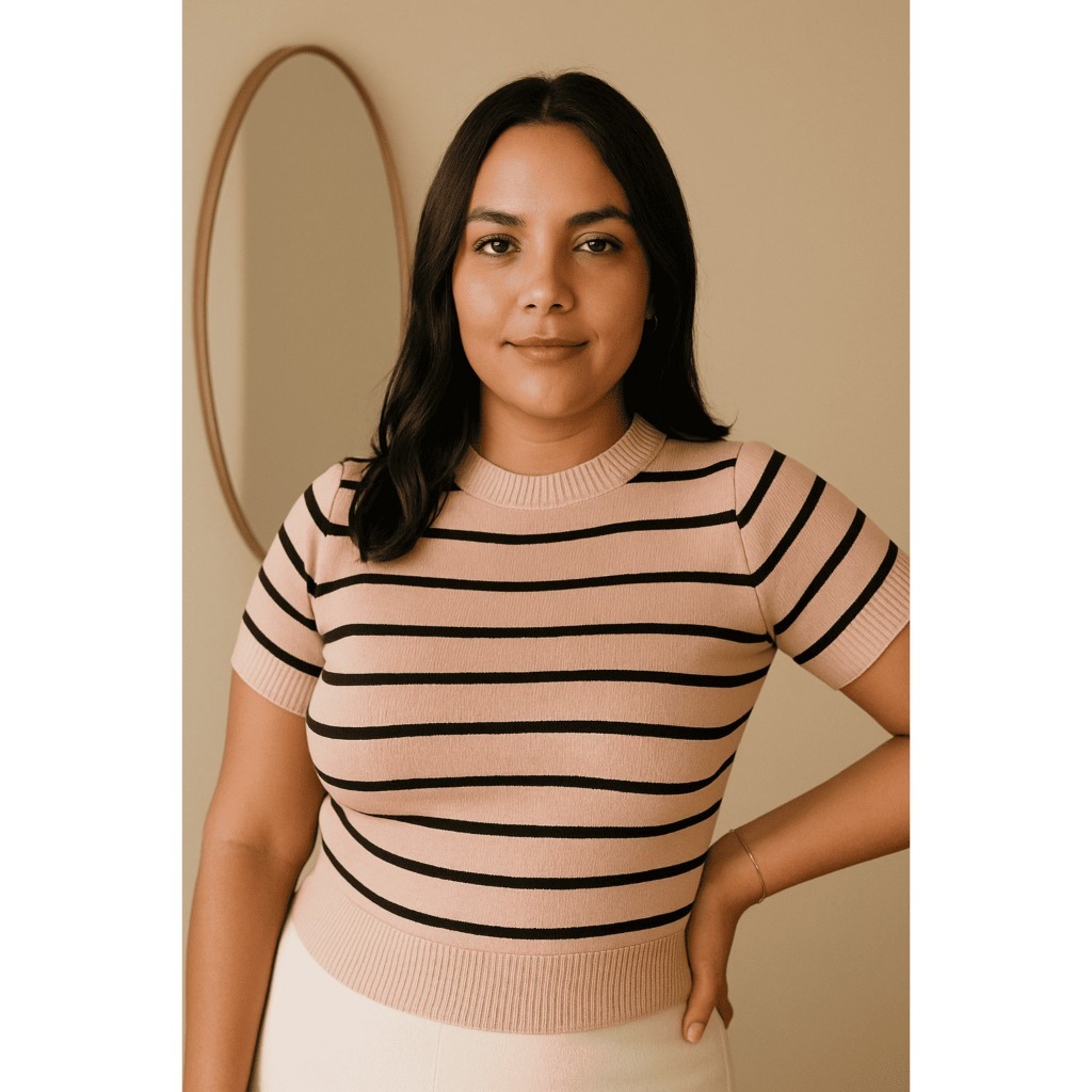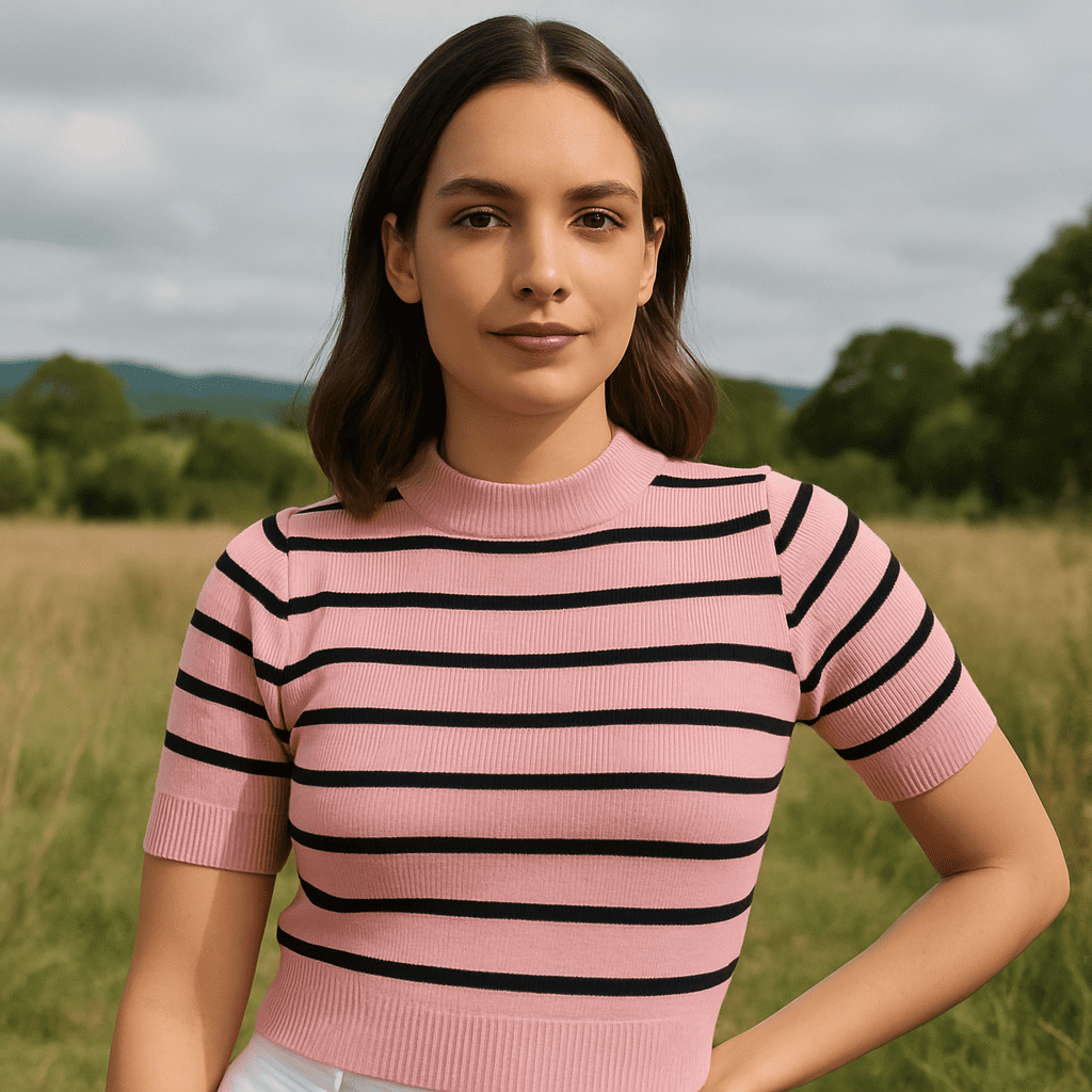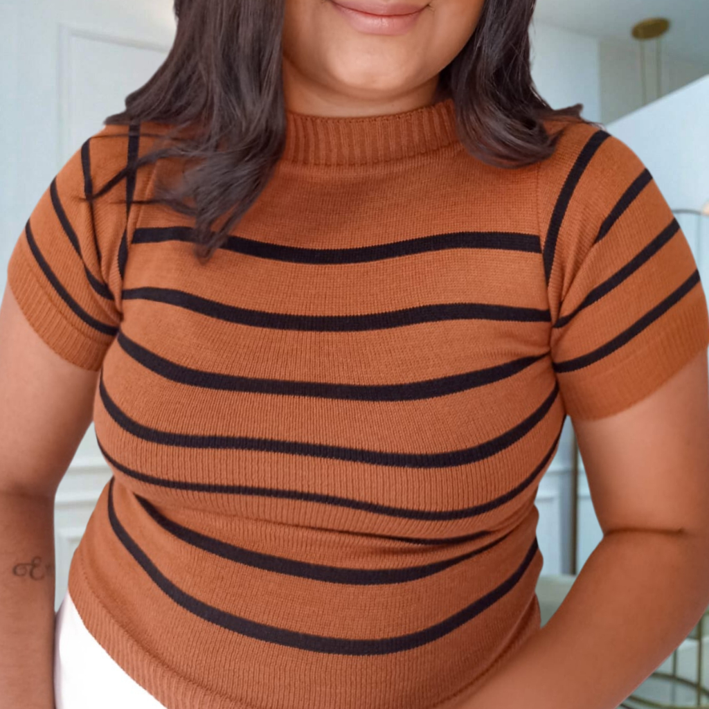 Blusa Feminina Cropped Modal Listrada Manga Curta Casual Social
