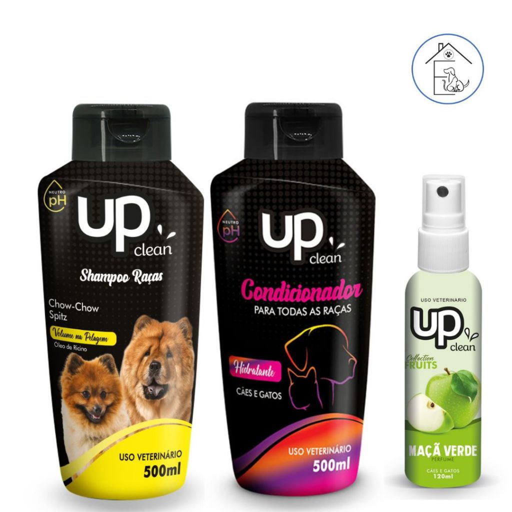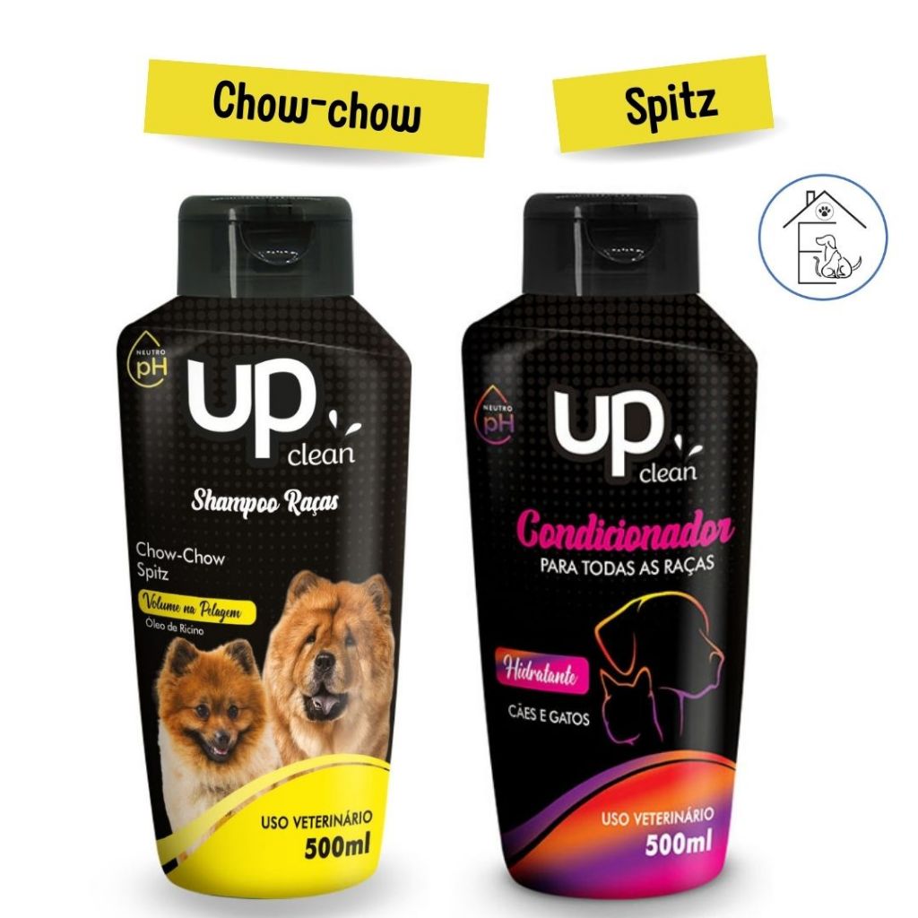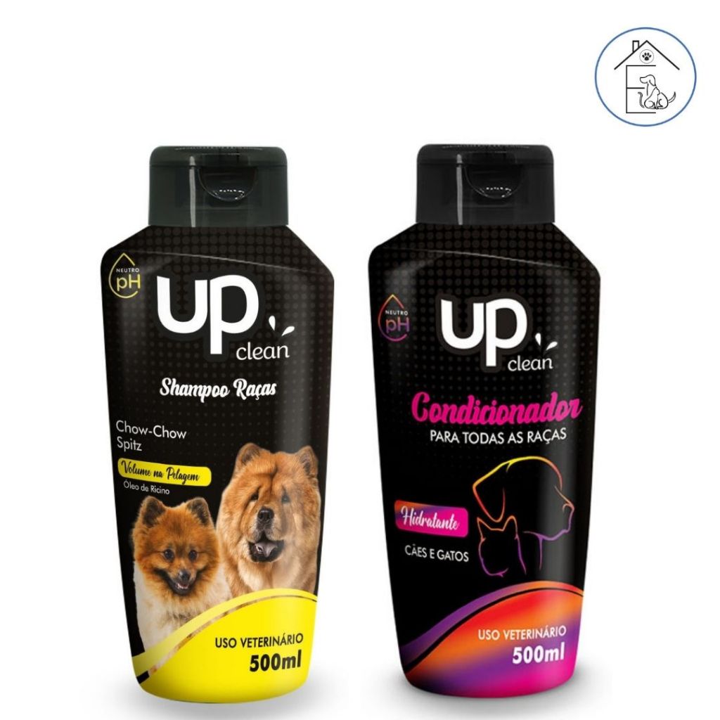 KIT BANHO PARA CACHORRO SHAMPOO RAÇAS CHOW-CHOW/SPITZ + CONDICIONADOR UNIVERSAL 500ML UP CLEAN