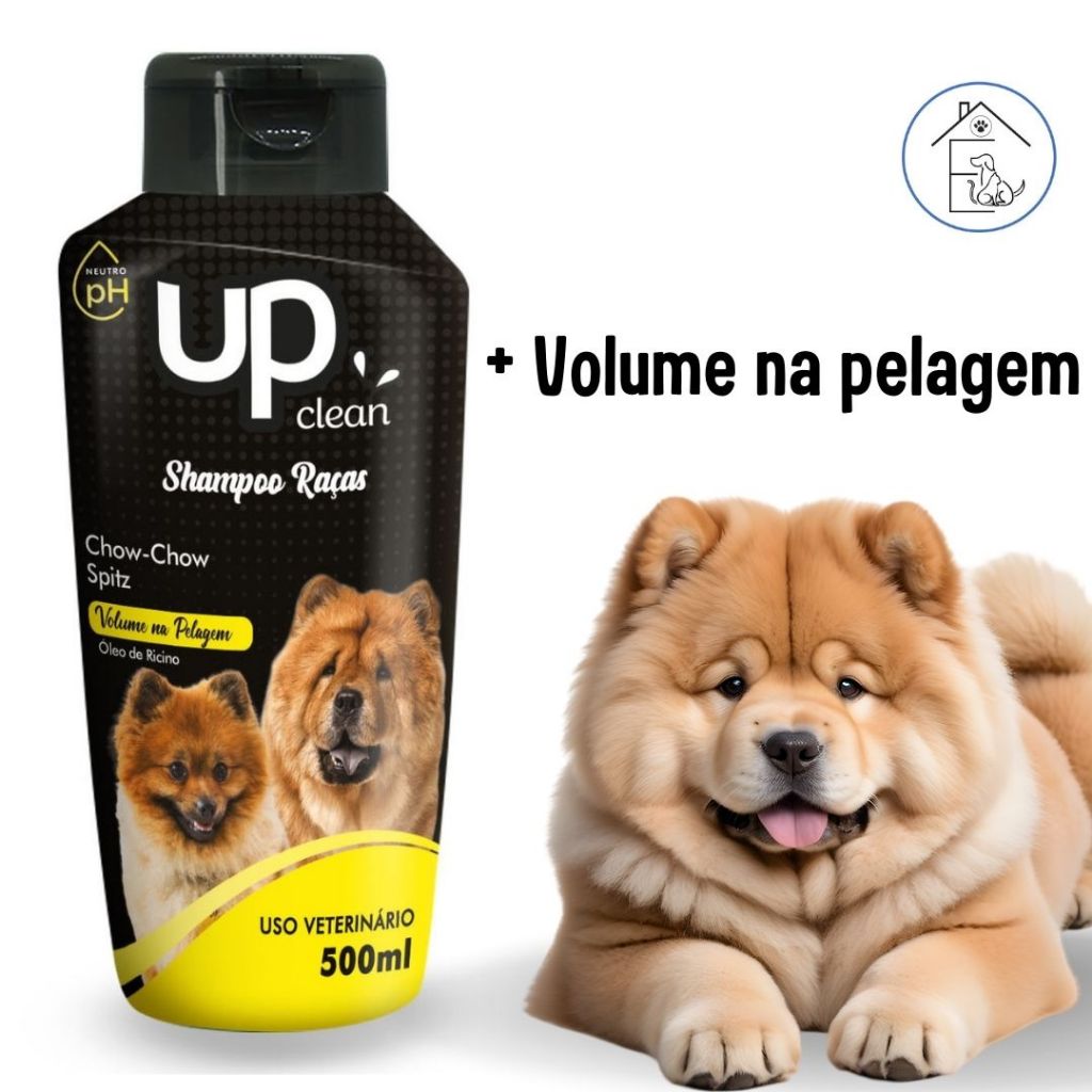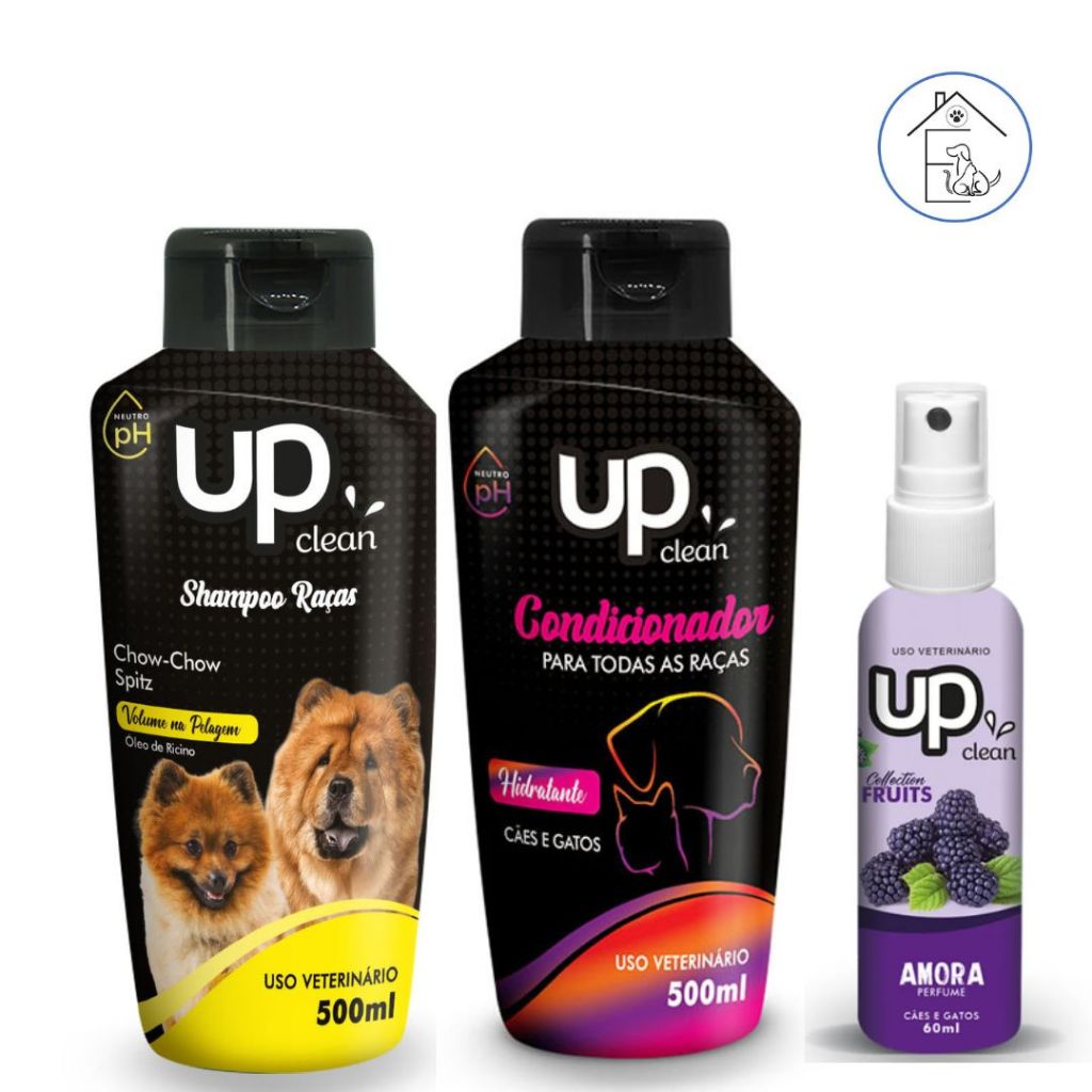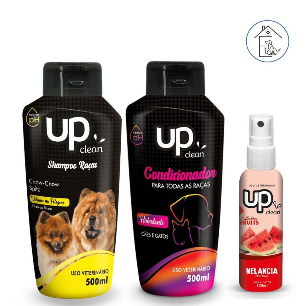 KIT BANHO PARA CACHORRO SHAMPOO RAÇAS CHOW-CHOW/SPITZ + CONDICIONADOR UNIVERSAL 500ML UP CLEAN