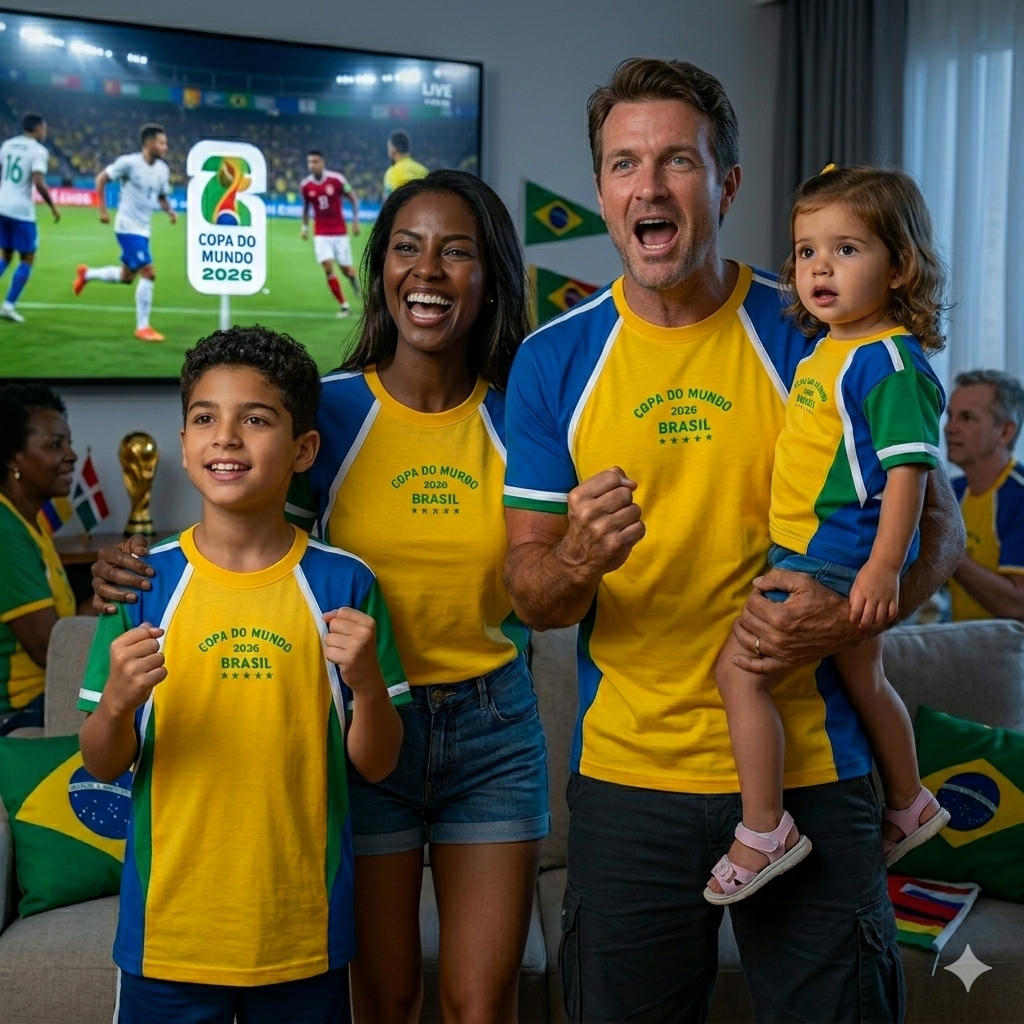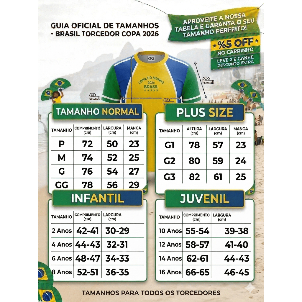 Camiseta do Brasil 100% Algodão Masculina Feminina Plus Size Infantil Juvenil Copa 2026 Torcida
