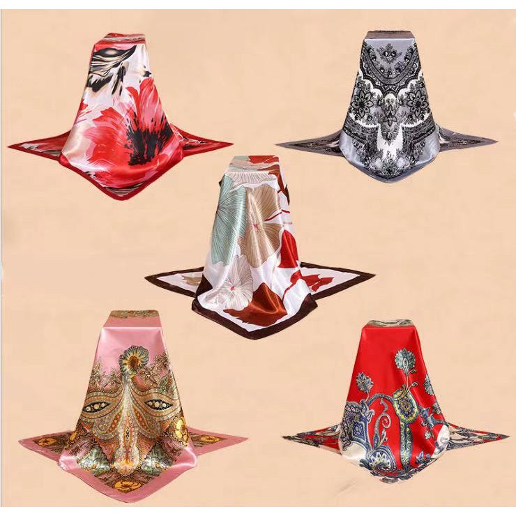 Lenços Cetim Seda Elegante Primavera Grande 90x90