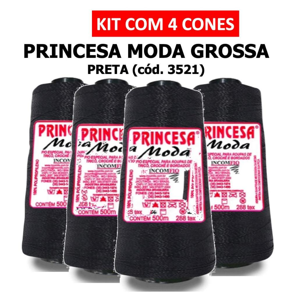 KIT 4 LINHAS - PRINCESA MODA GROSSA PRETA (3521) / Crochê / Artesanato / Tranças para cabelo / Incomfio