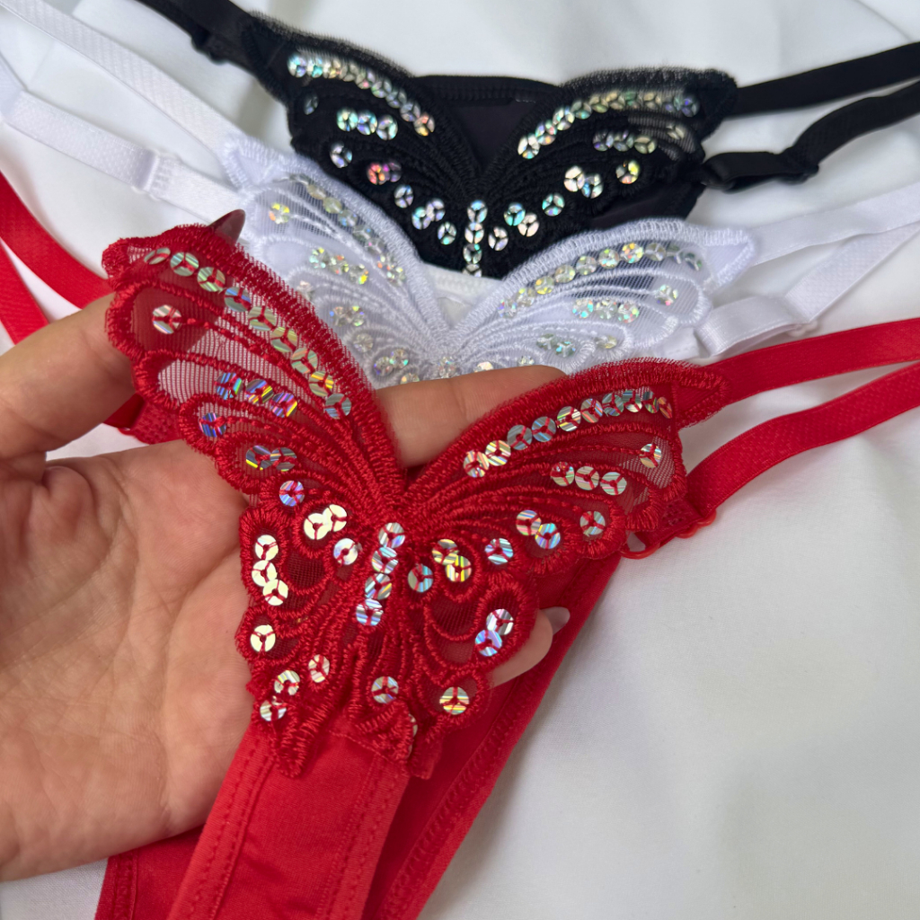 Calcinha Borborleta Brilho Sexy Regulagem Várias Cores