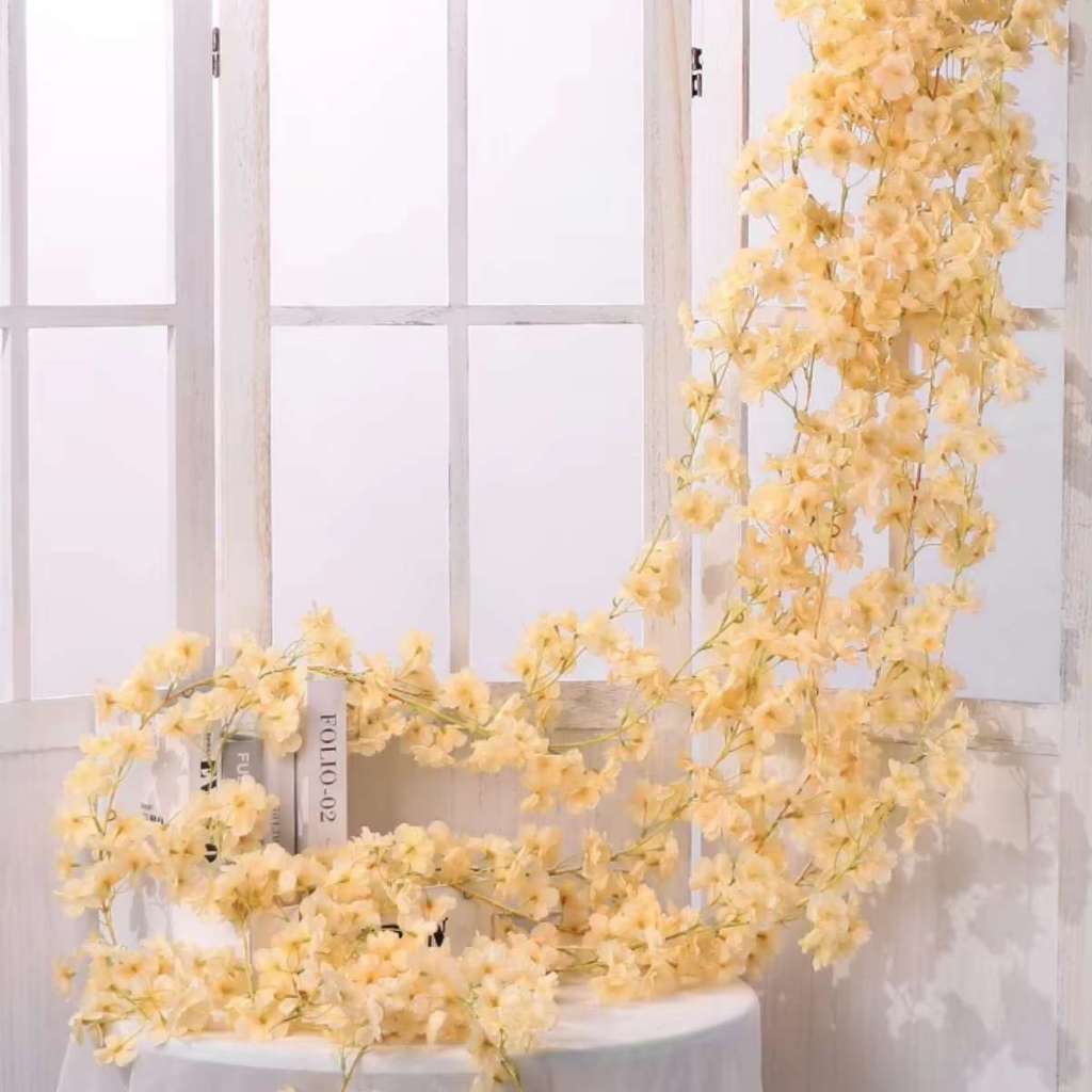 Corrente De Cerejeira Artificial 135 Folhas Trepadeira Folhagem 180cm Decoração Flor Pessegueiro