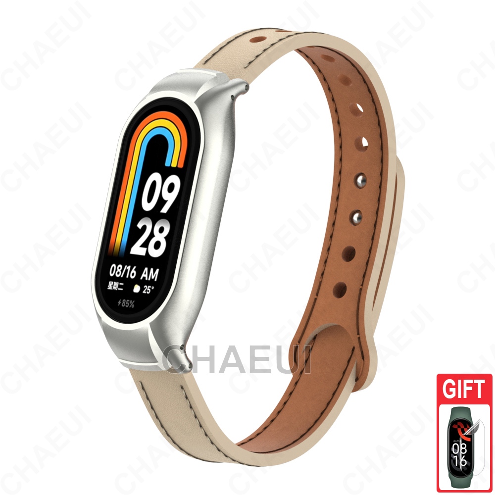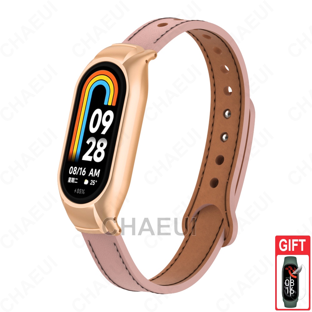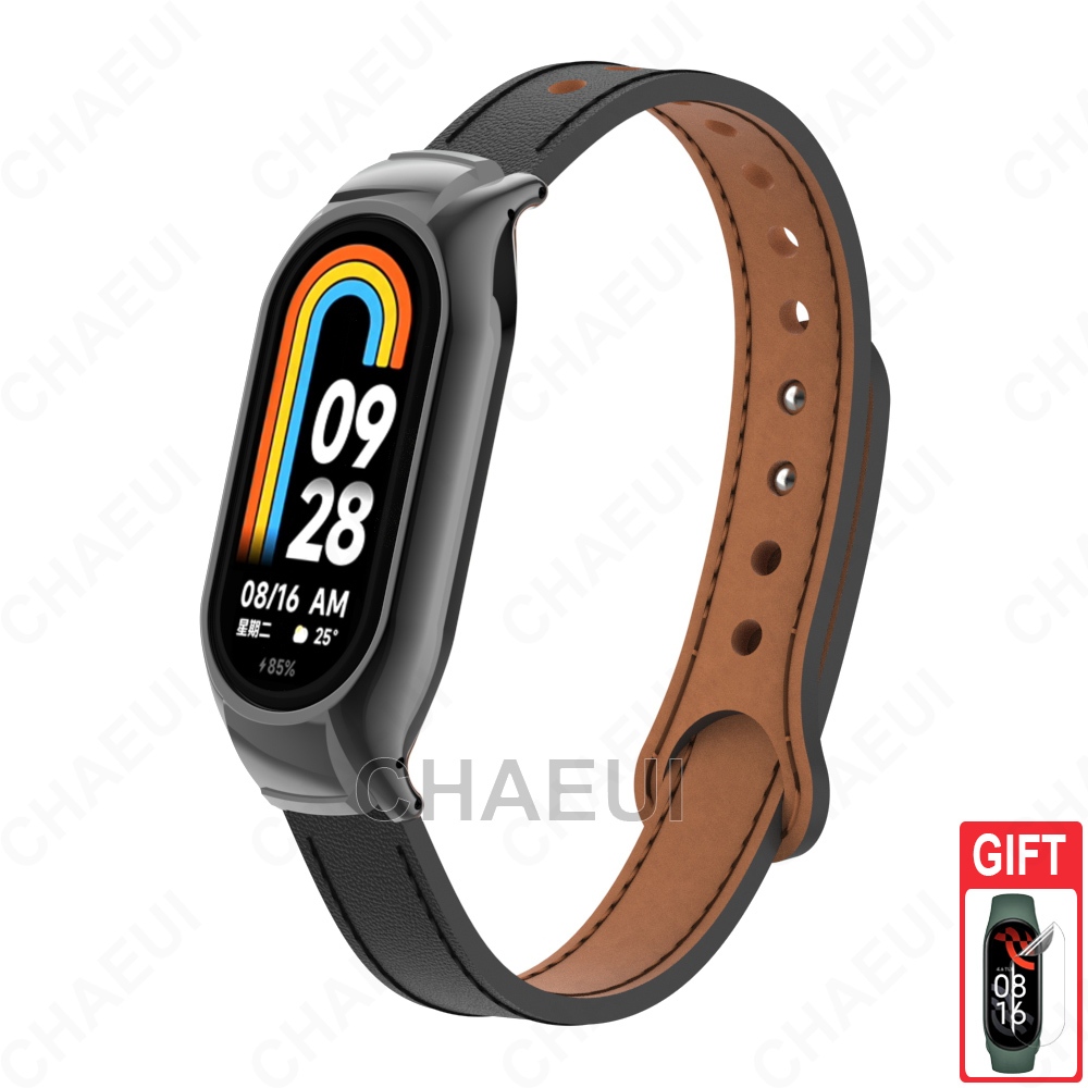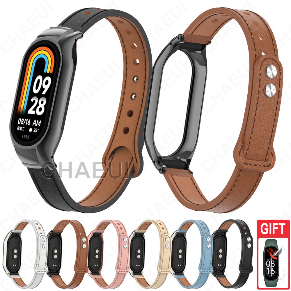 Pulseira De Couro Com Acessórios De Capa Para Xiaomi Smart Band 10 9 8 7 / Mi Band 6 5 4 3