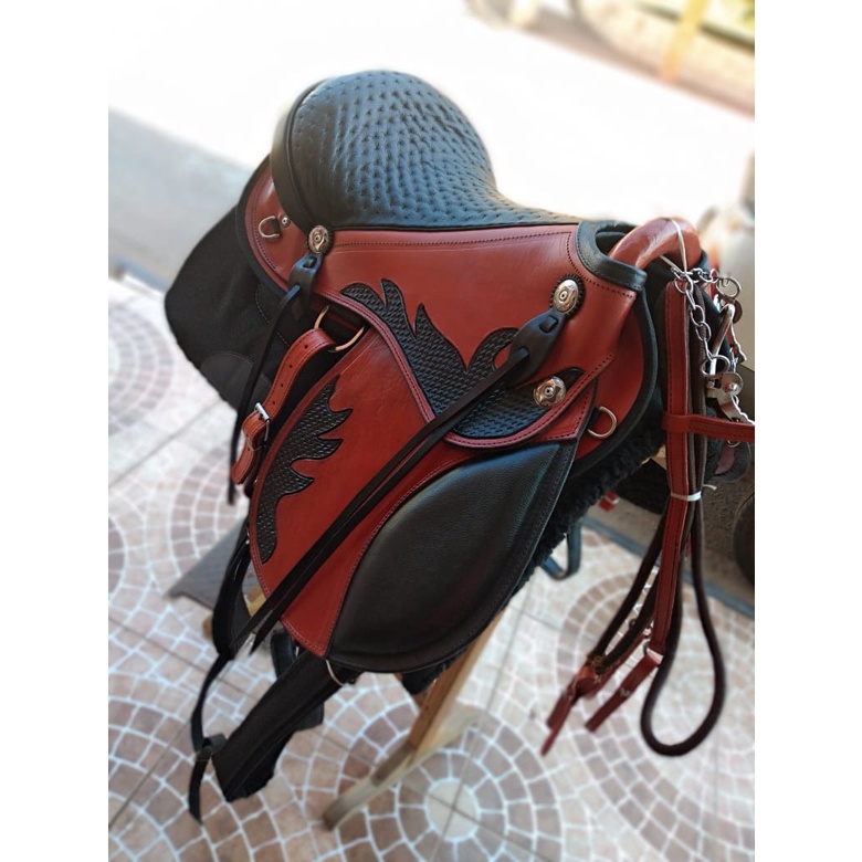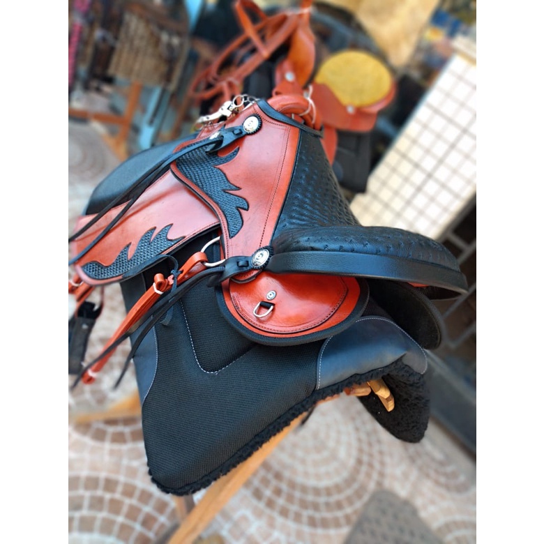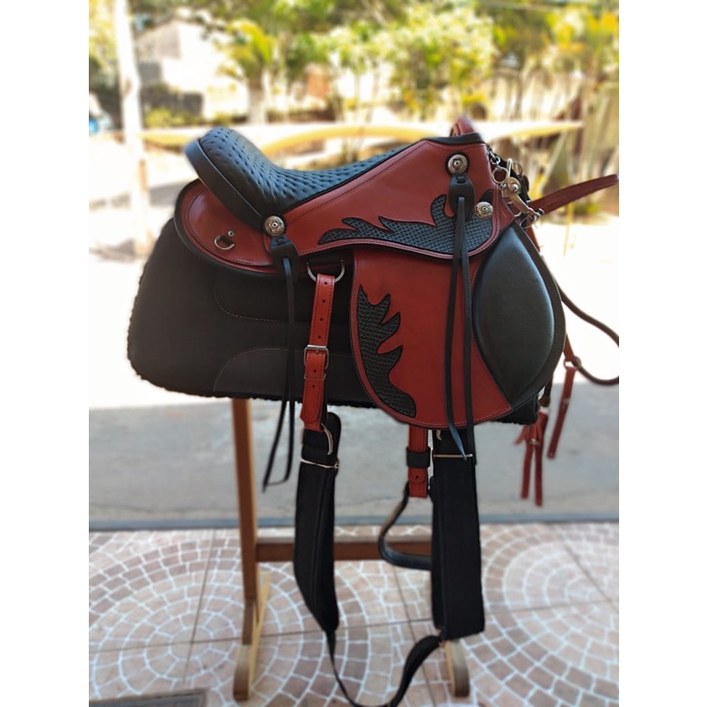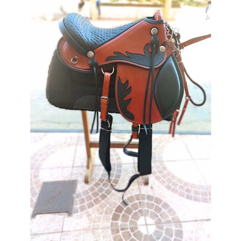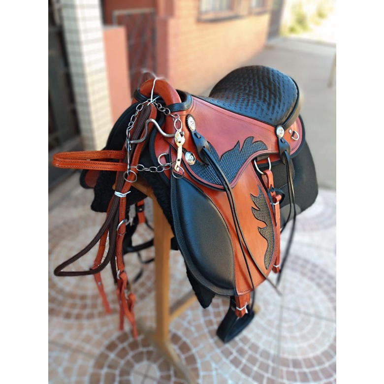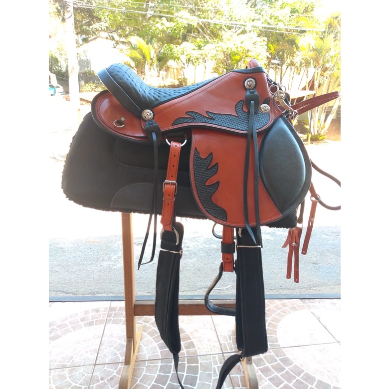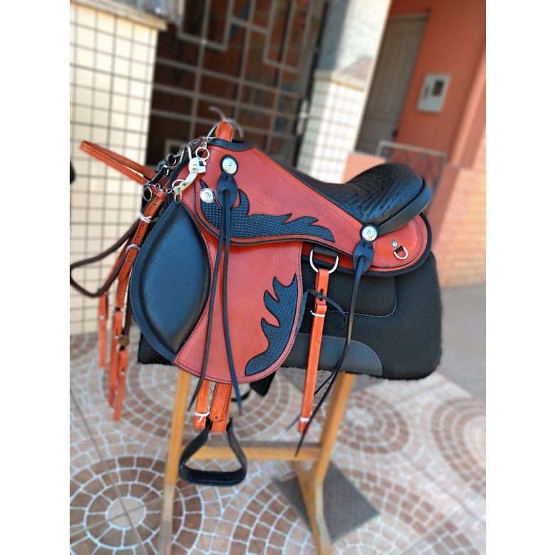 Sela Iene kit +couro bode +manta pelucia +freio agua choca Para Cavalo Pronta Para Uso