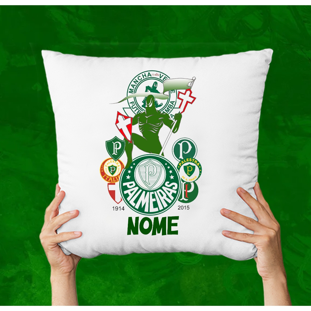 Almofada Palmeiras Personalizada Com Nome Enchimento em Micro Fibra 100% Siliconada - Antialérgica (Bem Fofinha)