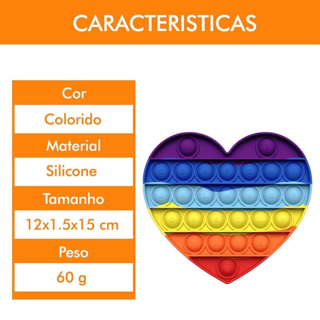 Pop It Fidget Sensorial Silicone AntiStress Coração Colorido