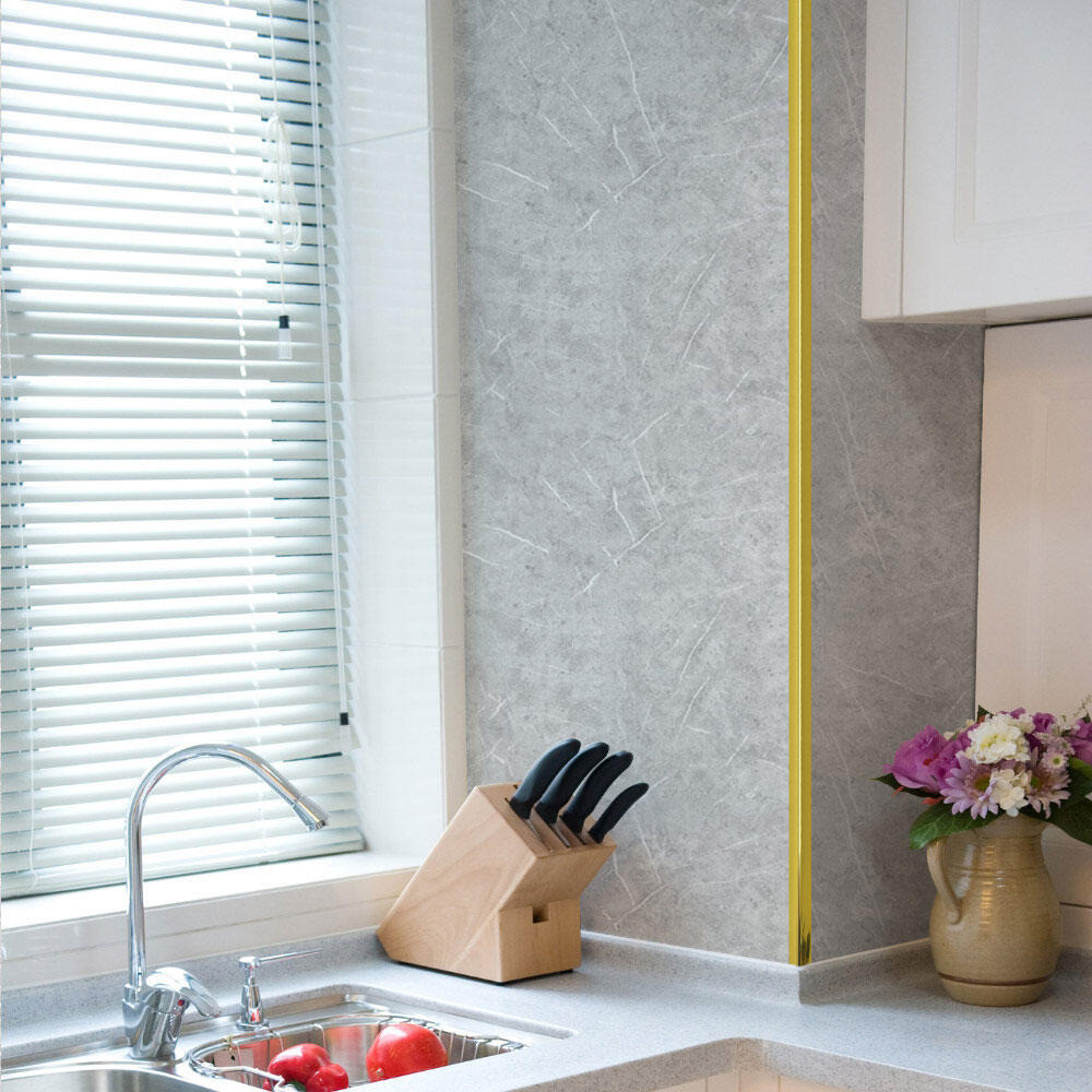Cantoneira Metalizada Auto Colante PVC 15mm p Decoração de Móveis e Paredes Dourado 5M