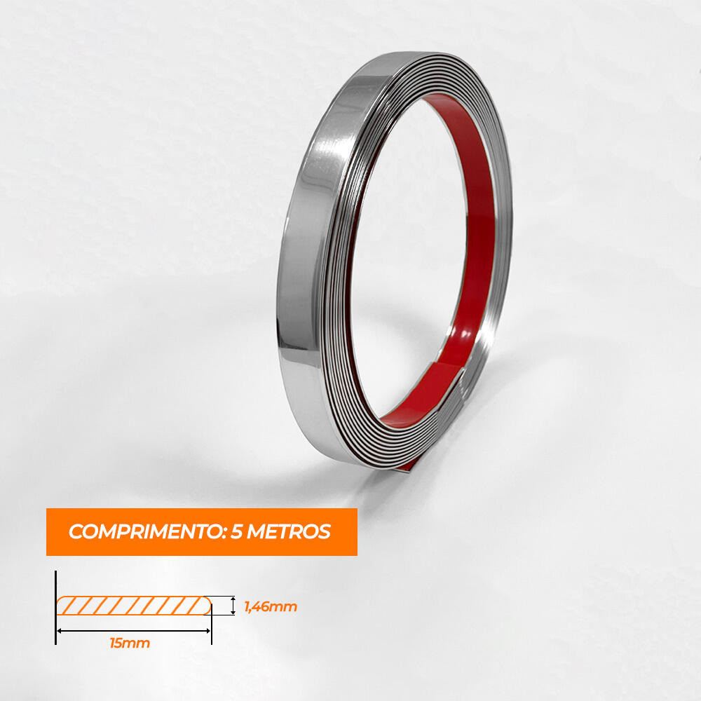 Fita Metalizada Auto Colante PVC 15mm p Decoração de Móveis e Paredes Prata 5M