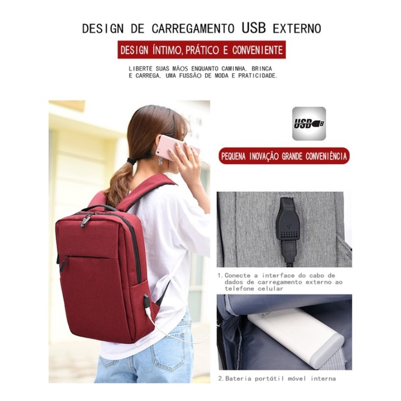 Mochila Masculino Feminino Para Notebook Moda 18l 15.6 Polegadas Fone de ouvido e USB Executiva Moderna