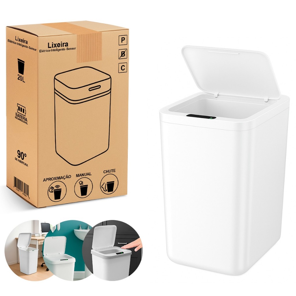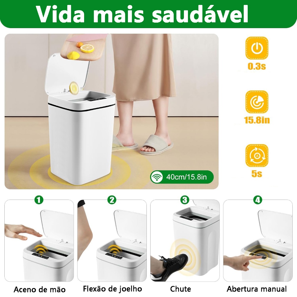 Lixeira Sensor Automática Inteligente de Banheiro Cozinha Escritório Capacidade 16 Litros