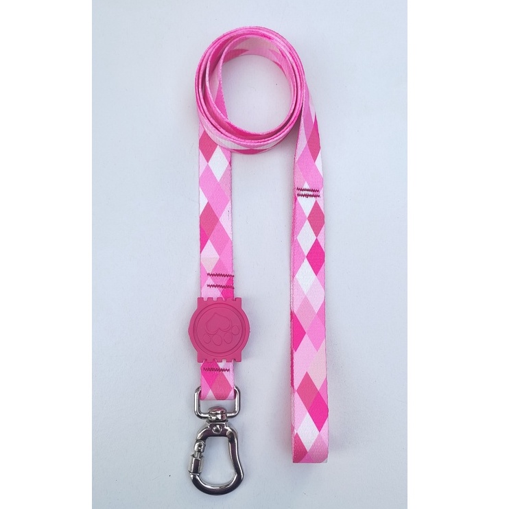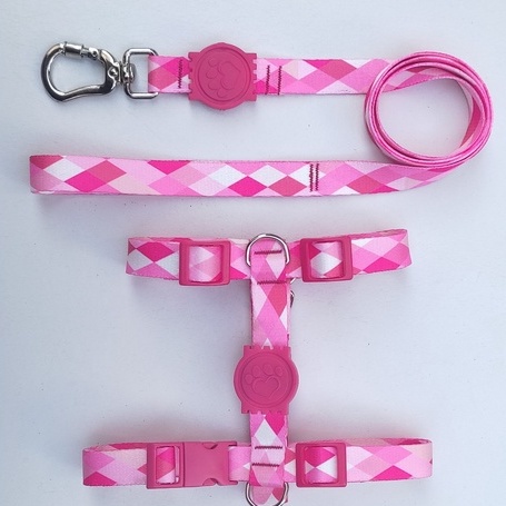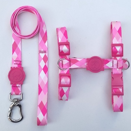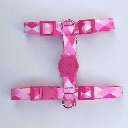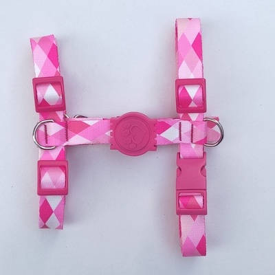 Peitoral H Anti-Puxão para Cachorros - Rosa Quadriculado com Detalhes em Rosa