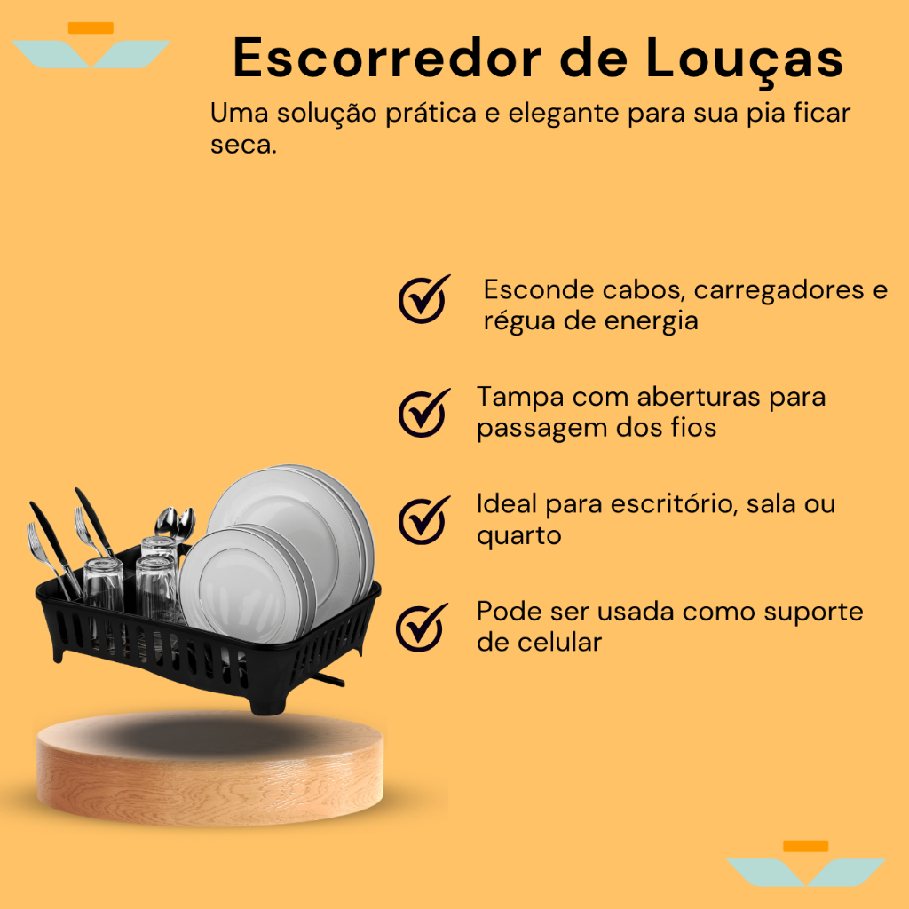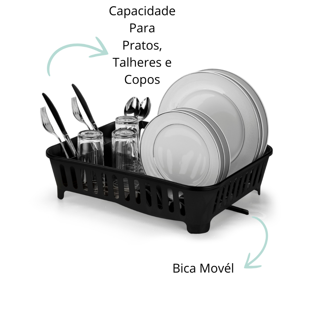 Escorredor Porta Talheres Copos Bica Movél Pia Seca 13 Pratos