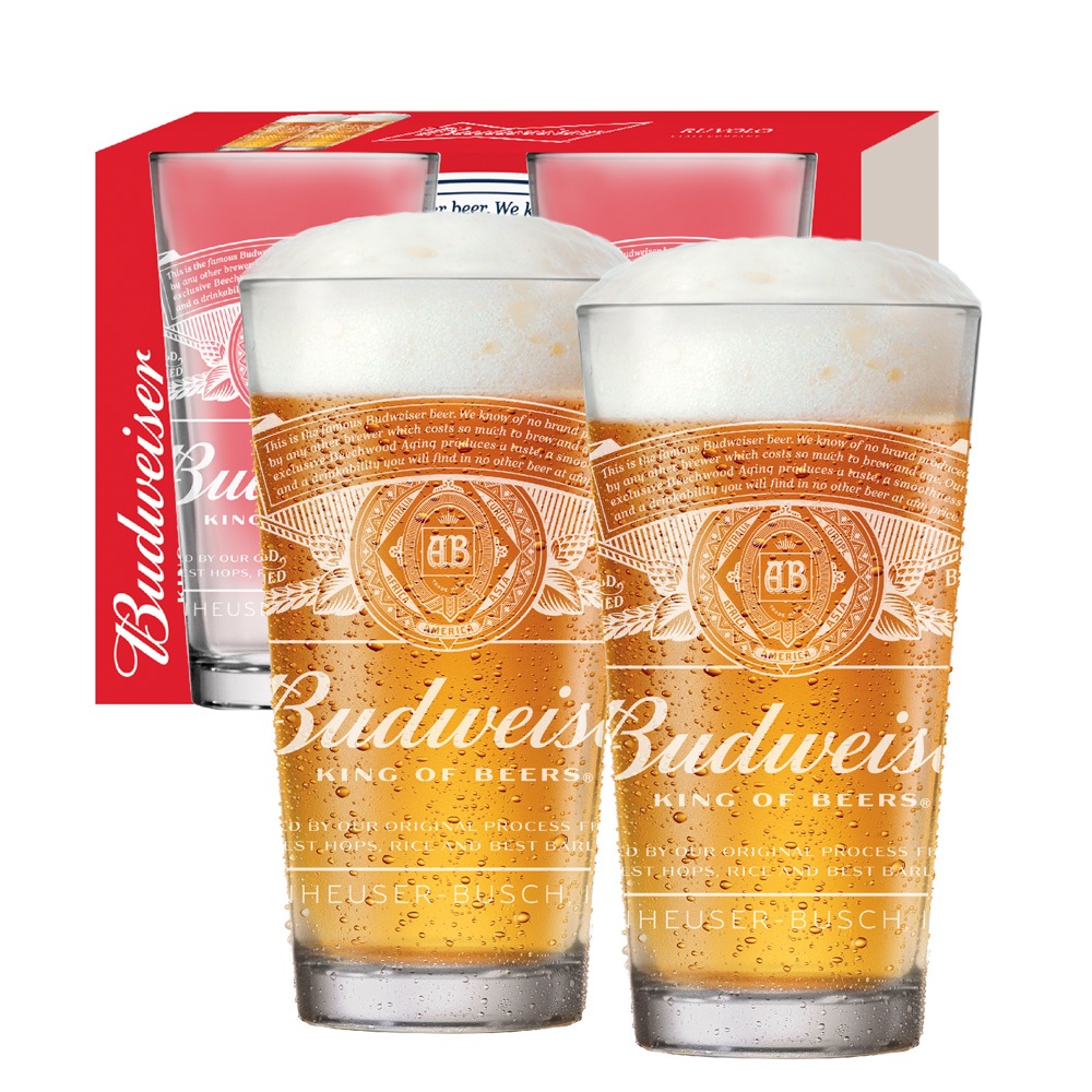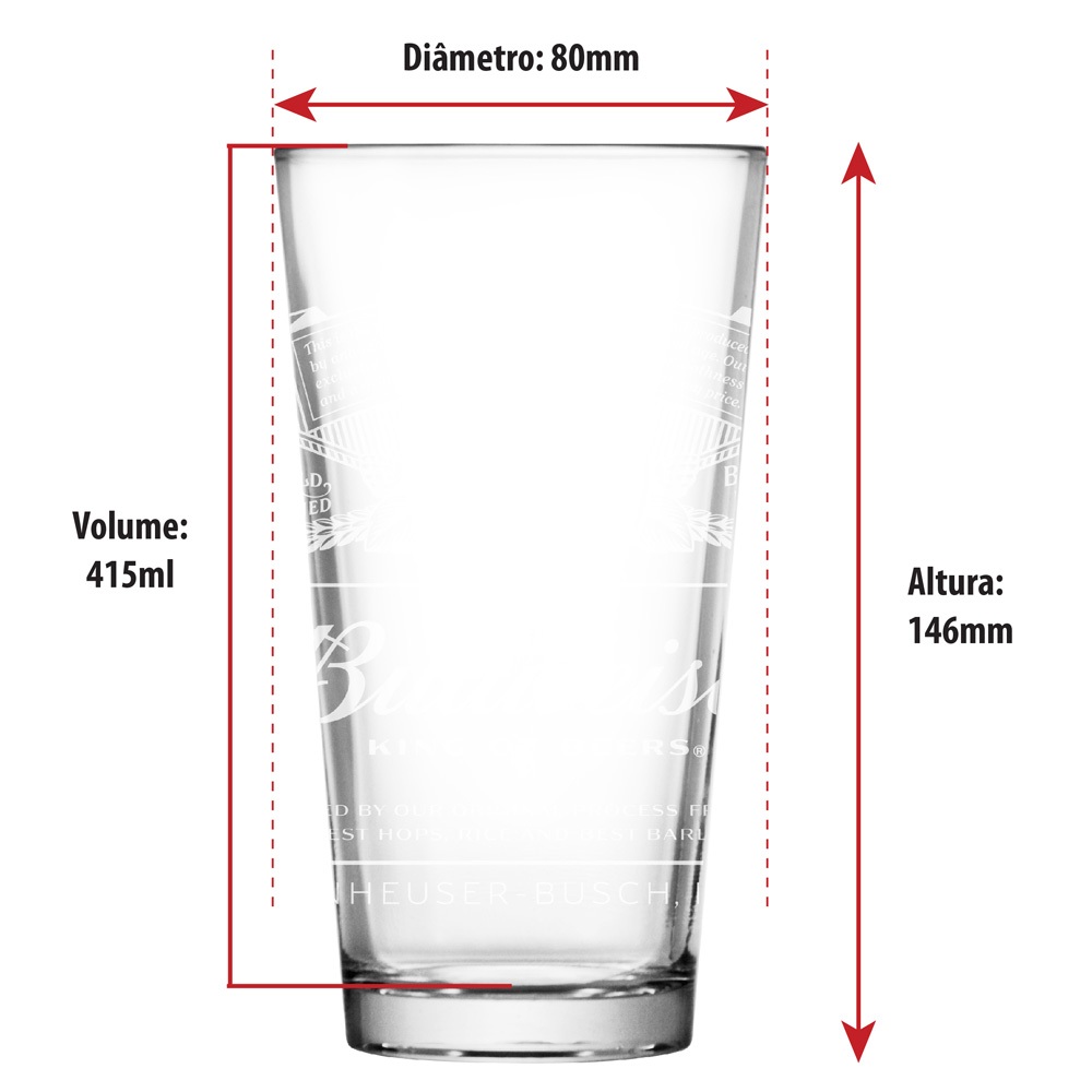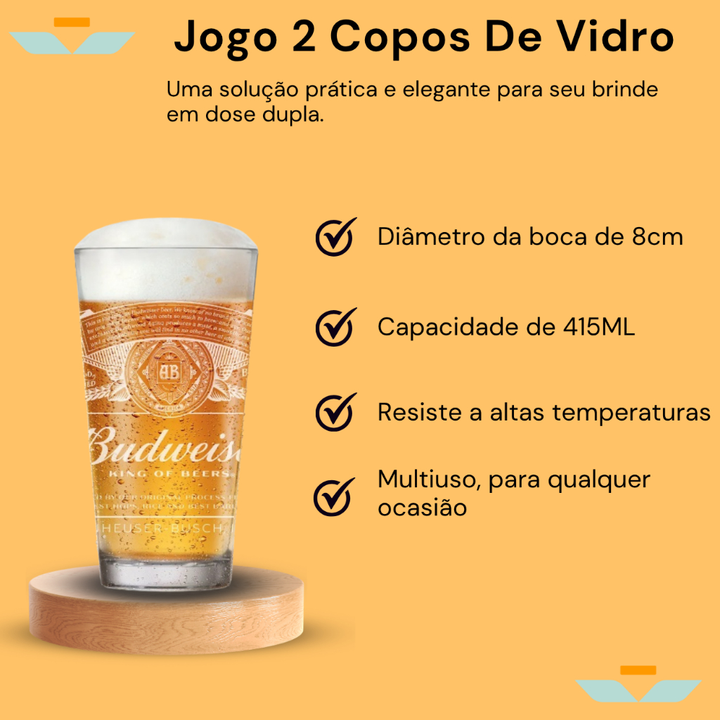 Jogo 2 Copos Vidro Para Chopp Cerveja Budwesier 415 Ml