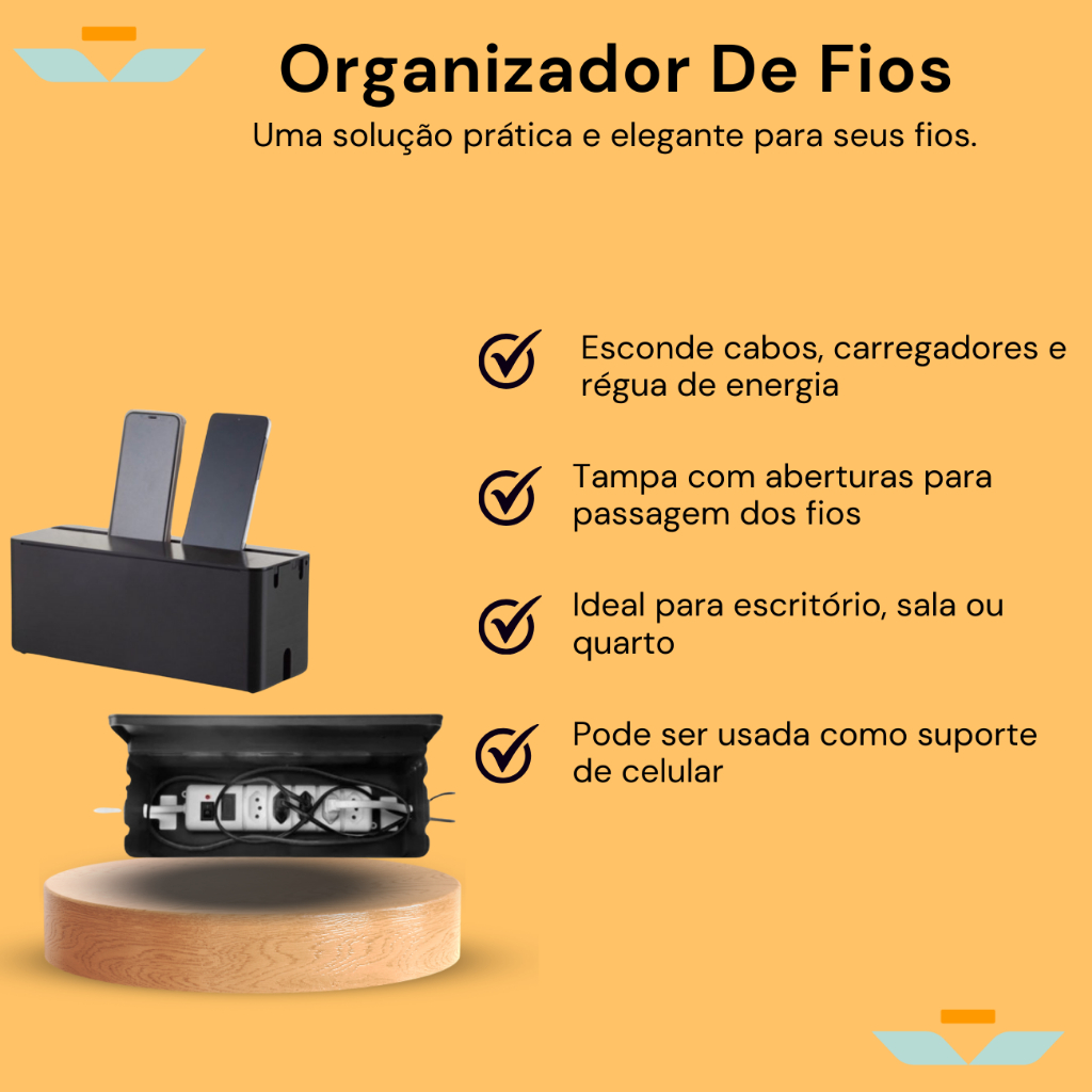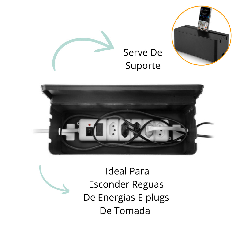 Caixa Organizadora De Fios, Cabos E Regua De Energia Suporte Celular