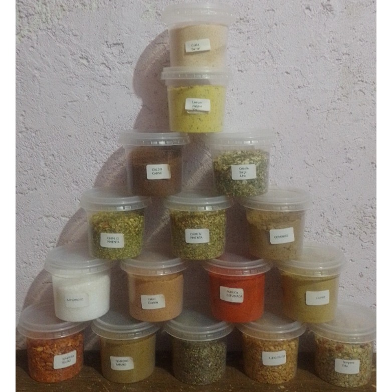 Kit com 20 temperos e condimentos c/ou s/pimenta + 20 potes de 140ml (EXTRA 10G DE ORÉGANO)
