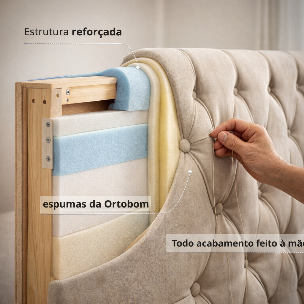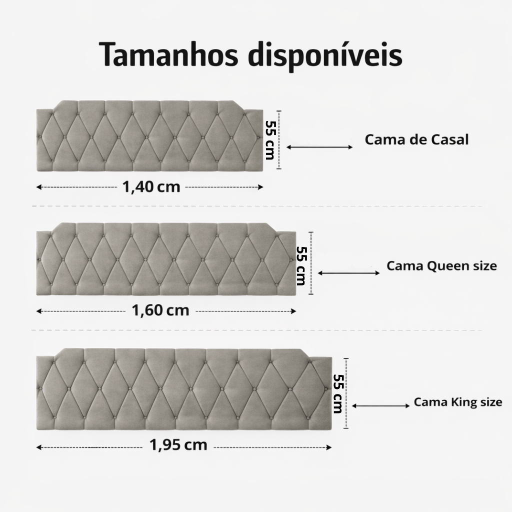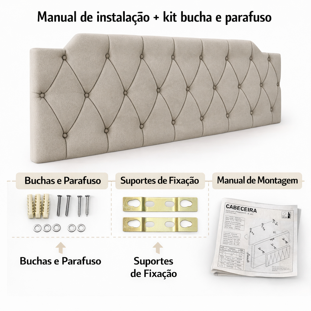 Cabeceira Estofada Kelly Cama de Casal Queen e King - Fixação na Parede - Cores Diversos - Envio Imediato