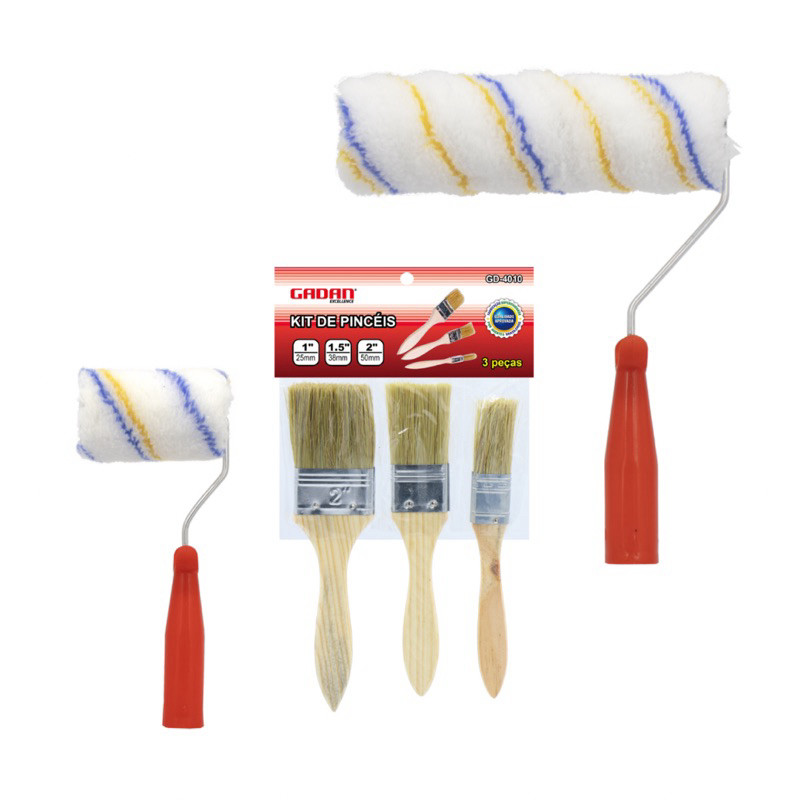 Kit de Pintura Completo 2 Rolos de 4” e 10” + 3 Pincéis Parede e Reforma ou individuais