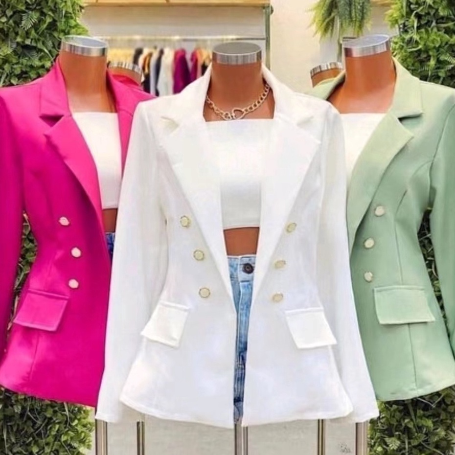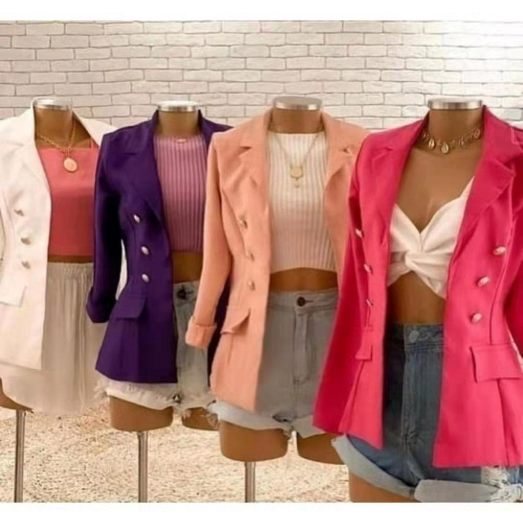 Blazer Alfaiataria Feminino Casaco Social Com 6 Botão Lindo Super Moda