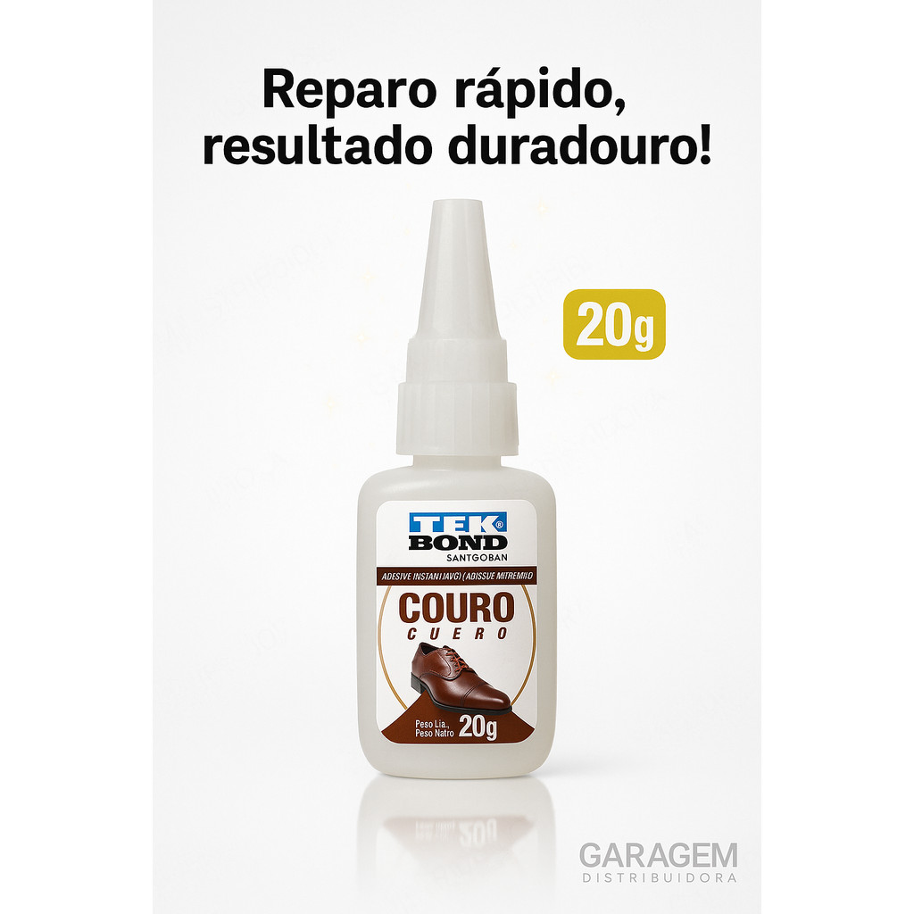 Adesivo instantâneo Tek bond Couro 20g, cola couro, calçados, metal, viton , borracha, eva