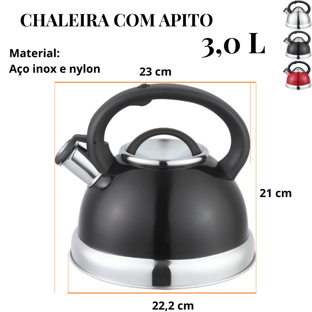Chaleira Aço Inox com Apito 3 Litros com alça Unitermi