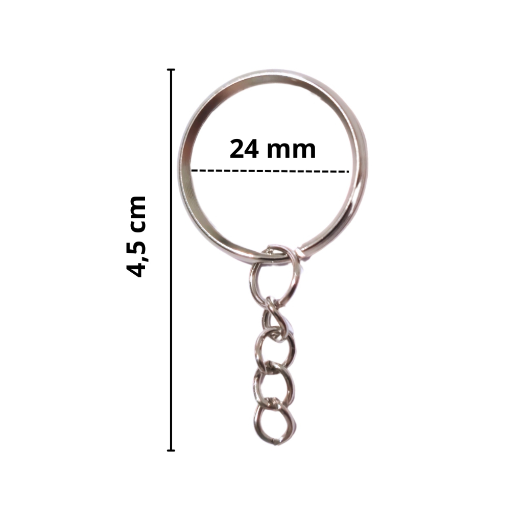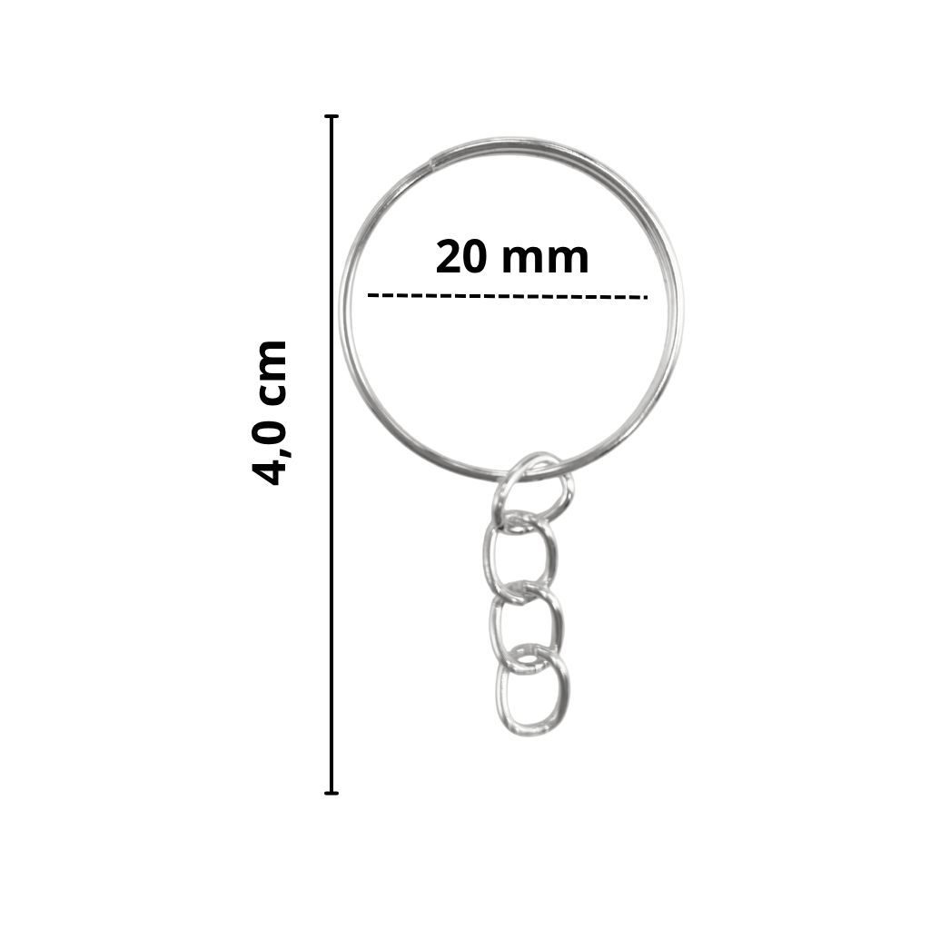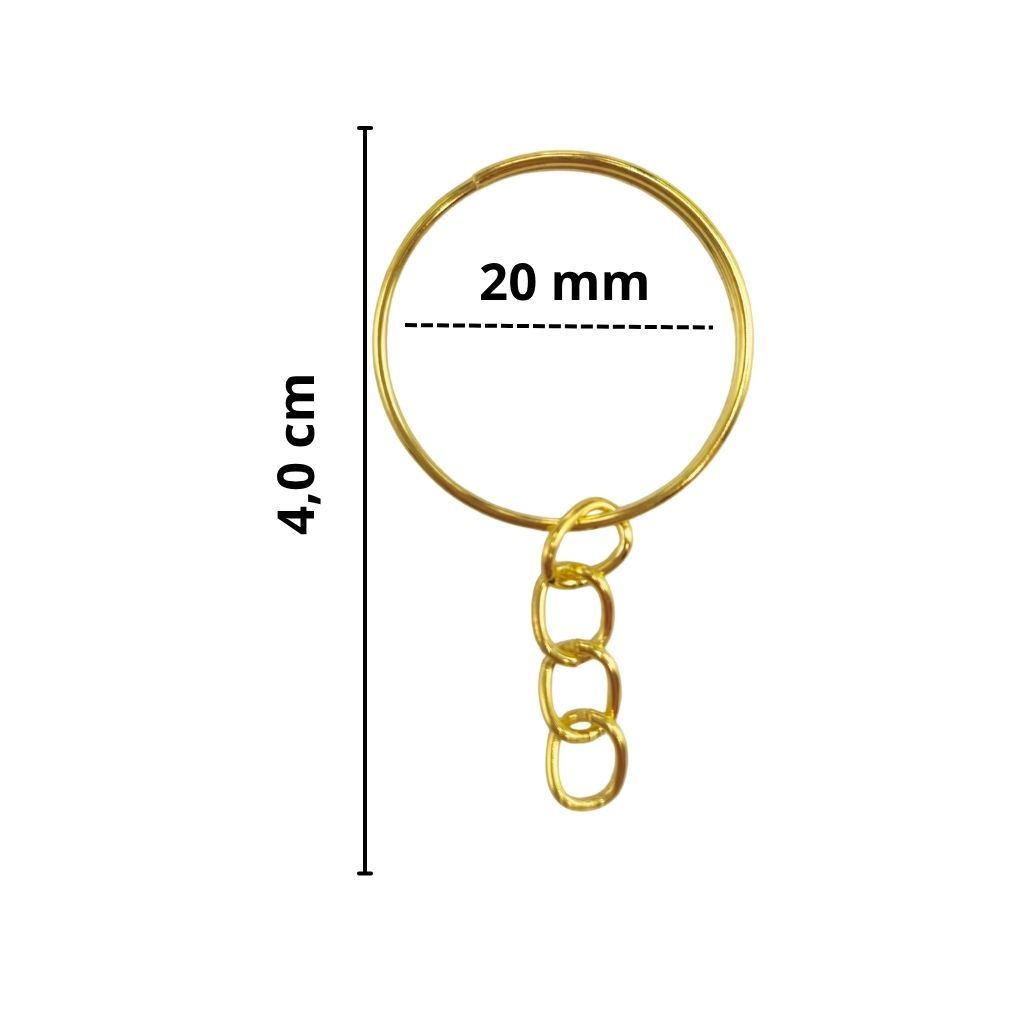 20/50/100 Argola Chaveiro com corrente 20mm 24mm Pacote Prata Ouro