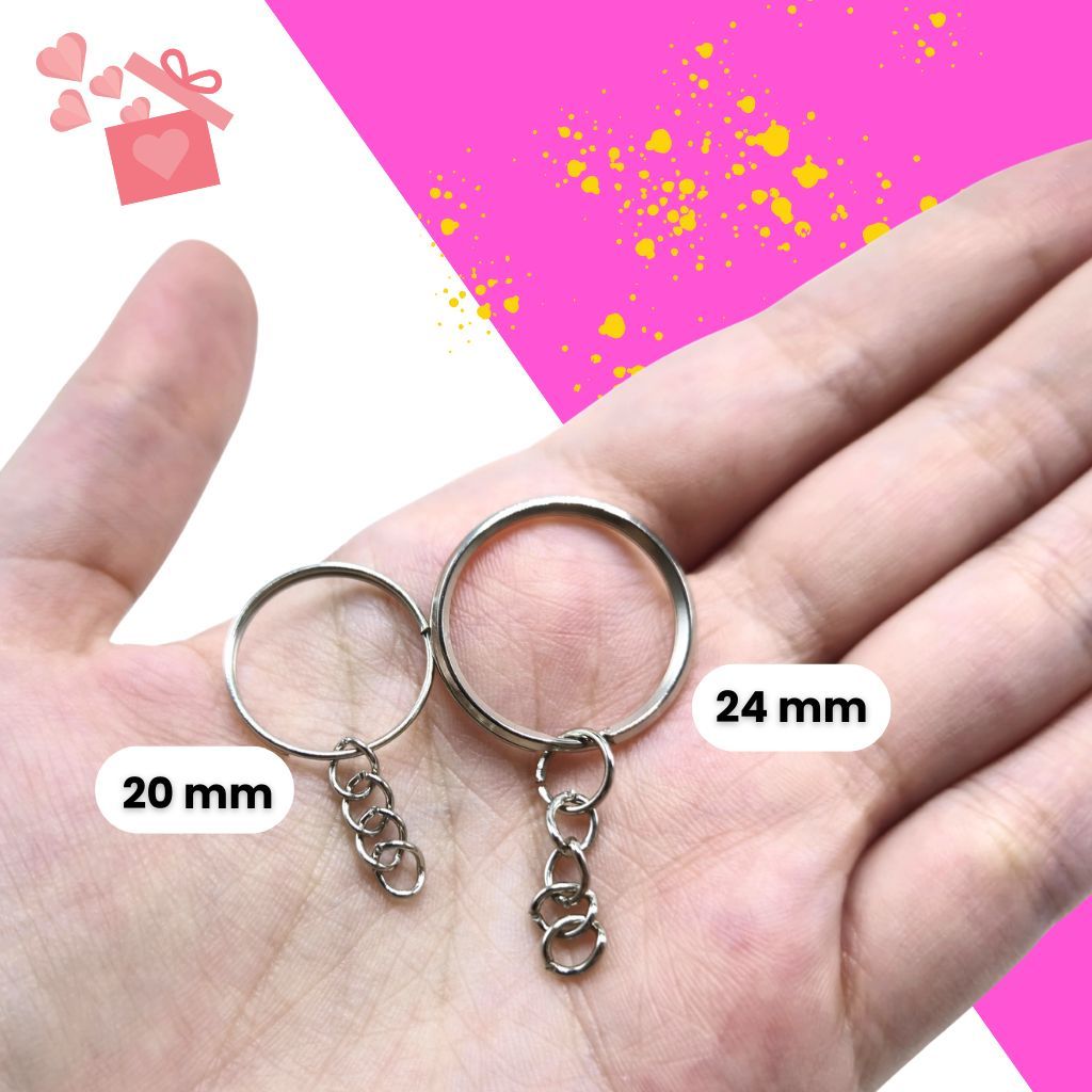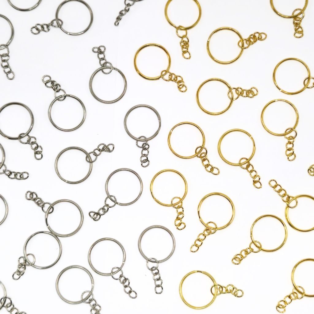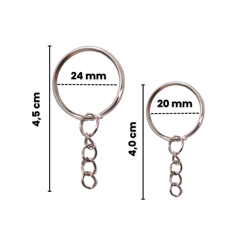 20/50/100 Argola Chaveiro com corrente 20mm 24mm Pacote Prata Ouro