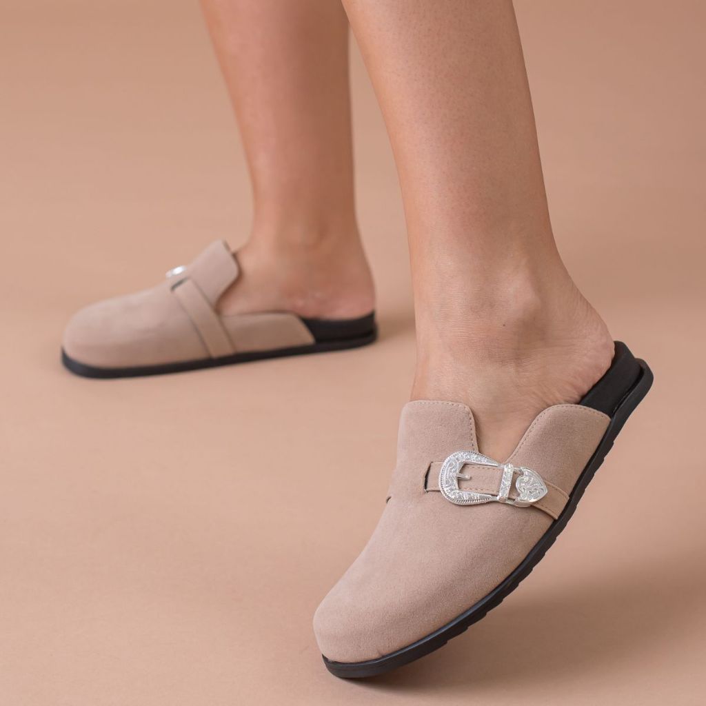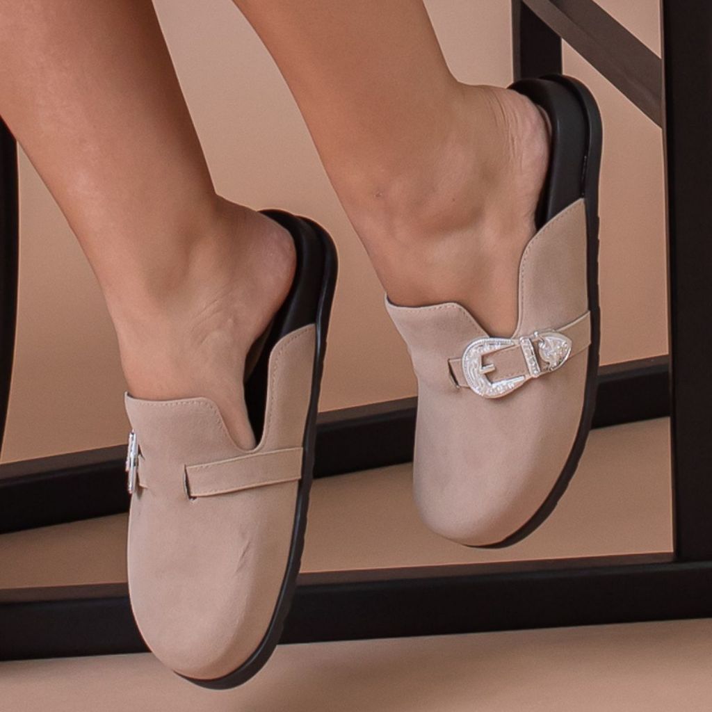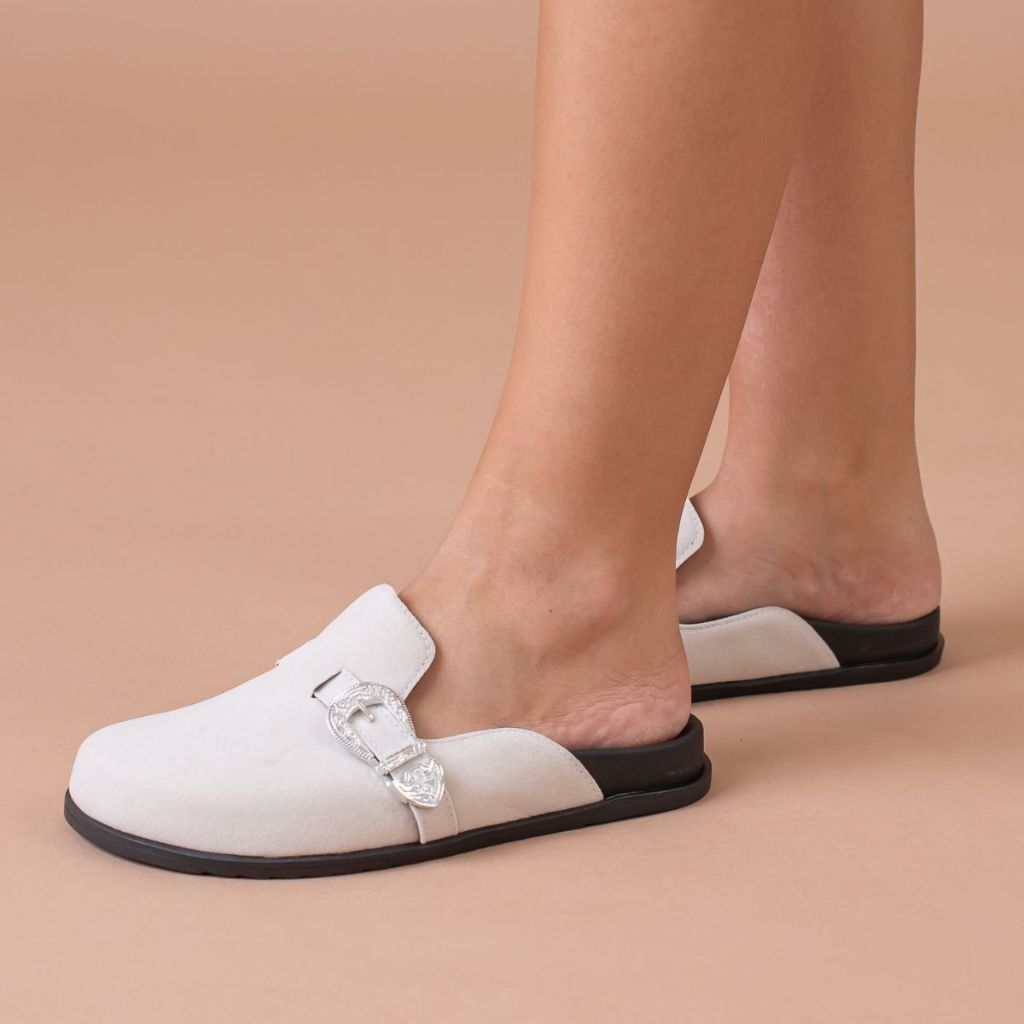 Clog Sapato Feminino Mule Babuche Camurça Com Fivela Estilo Conforto Elegância Anatômico Sandália