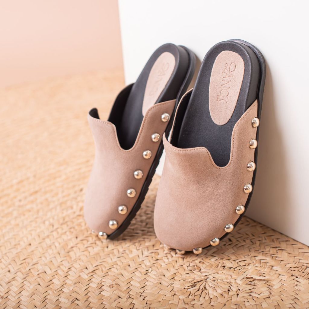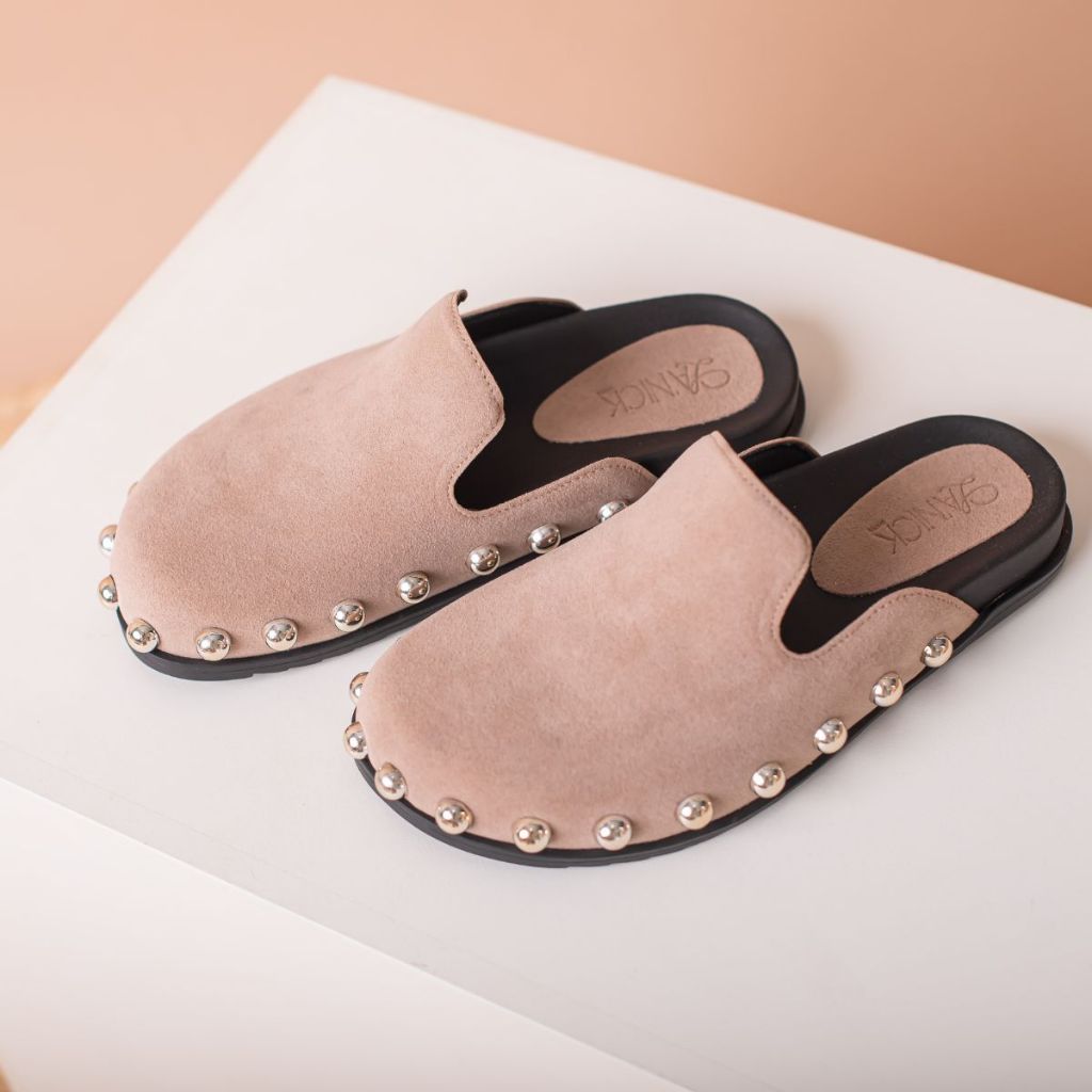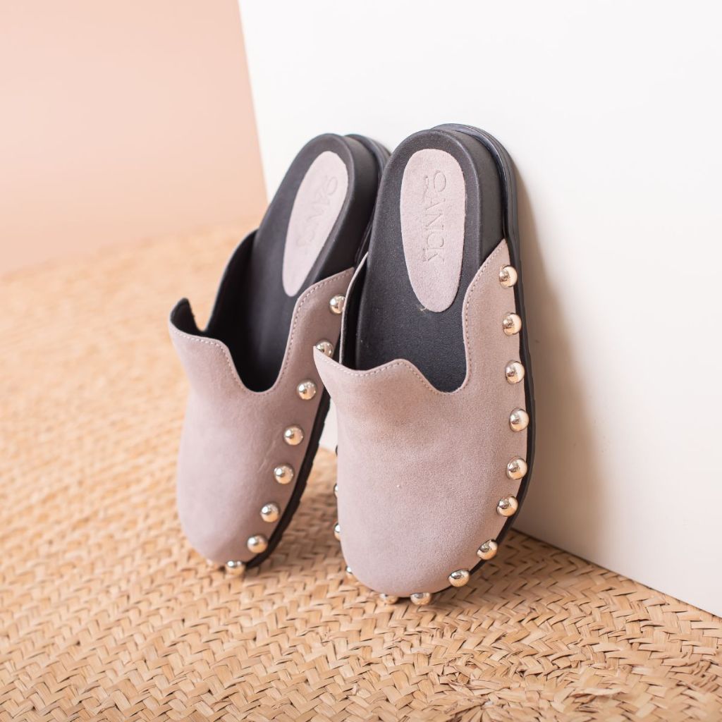 Clog Sapato Feminino Mule Babuche Camurça Com Bolinha Estilo Conforto Elegância Anatômico Sandália
