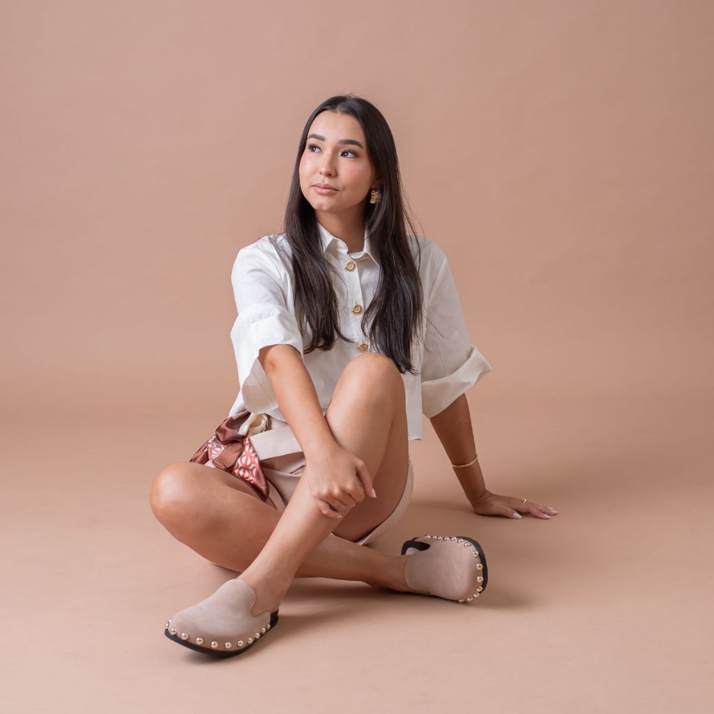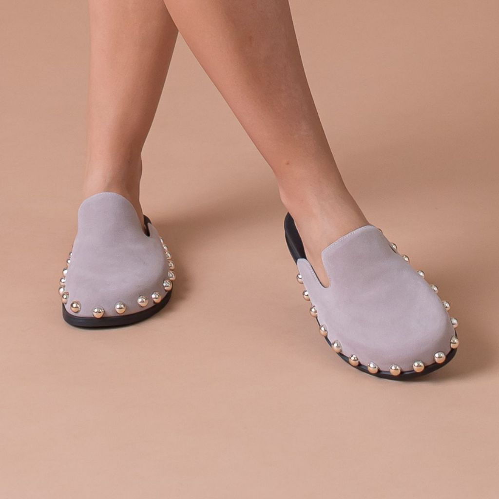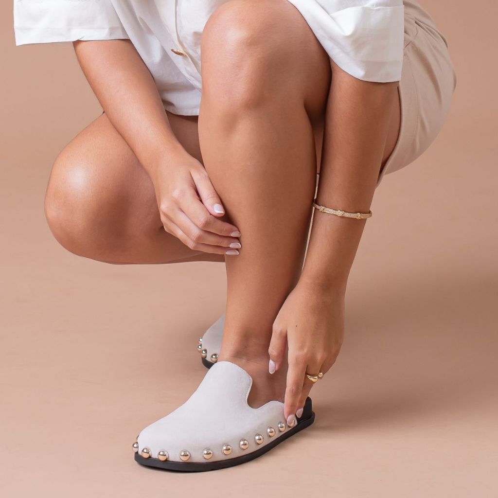 Clog Sapato Feminino Mule Babuche Camurça Com Bolinha Estilo Conforto Elegância Anatômico Sandália